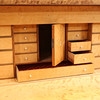 Missing key to interior cabinet Box buds with damage Damage to the ledge between boxes Cracks, scratches, stains Somewhat wormstung.