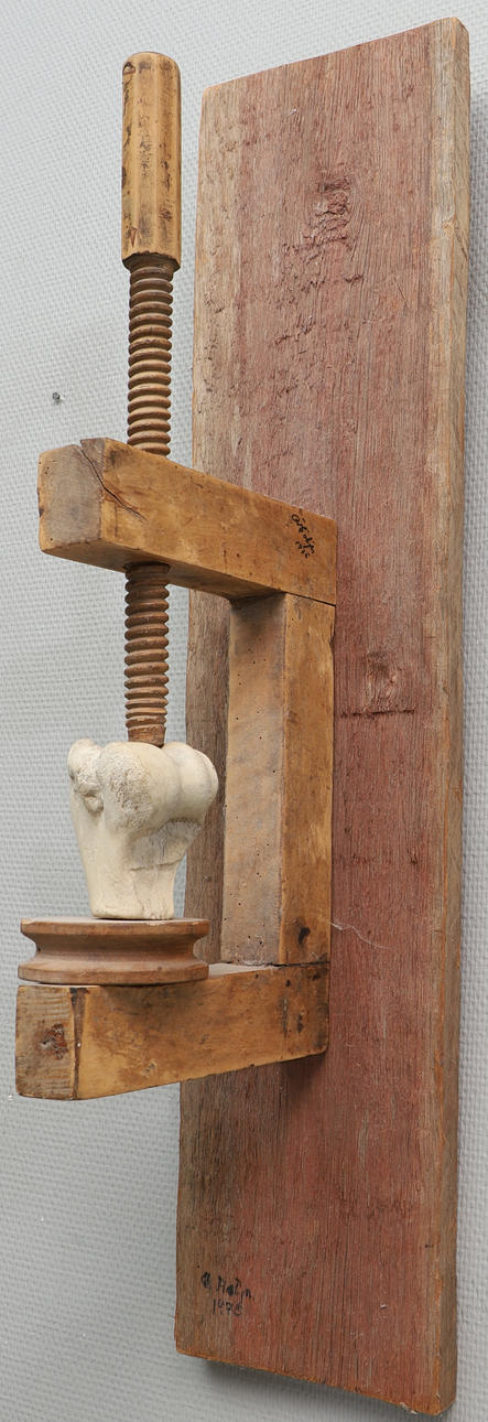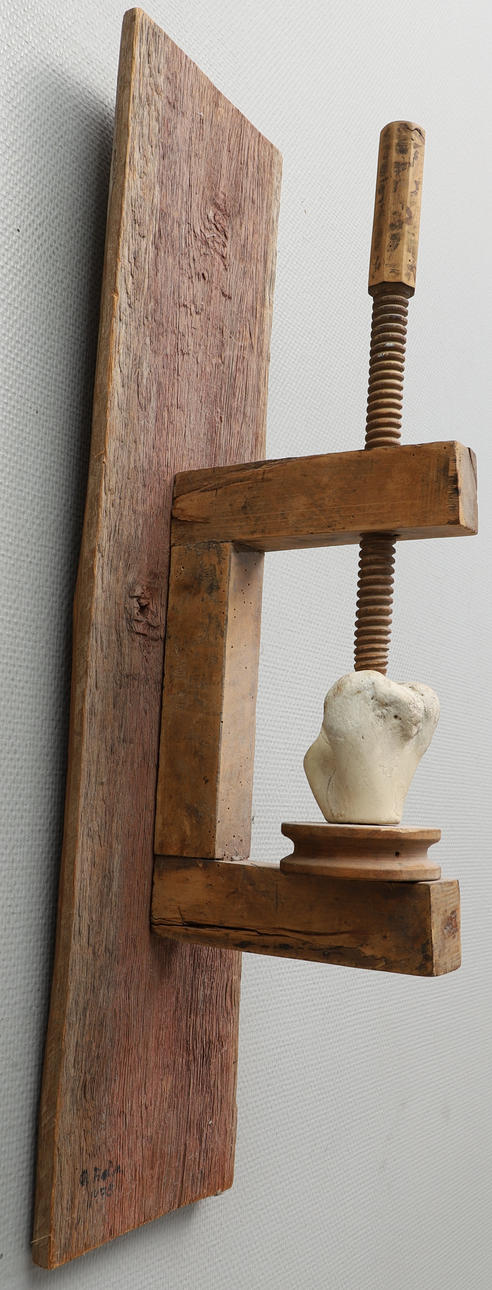 4366920. ALLAN HOBJER. Wall sculpture, “The Left Hand”, bone & wood, signed, dated.