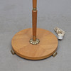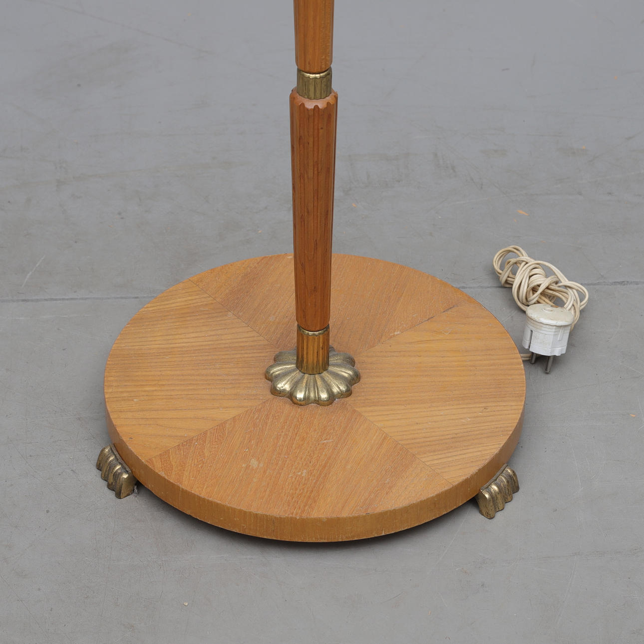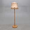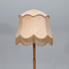Frame veneered with elm, brass details. Height excl. screen approx. 145 cm. Textile screen, diameter approx. 45, height 35 cm.