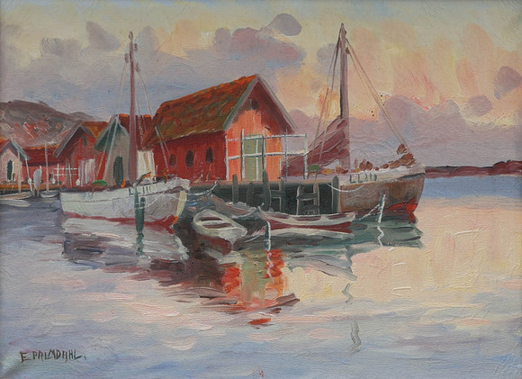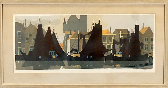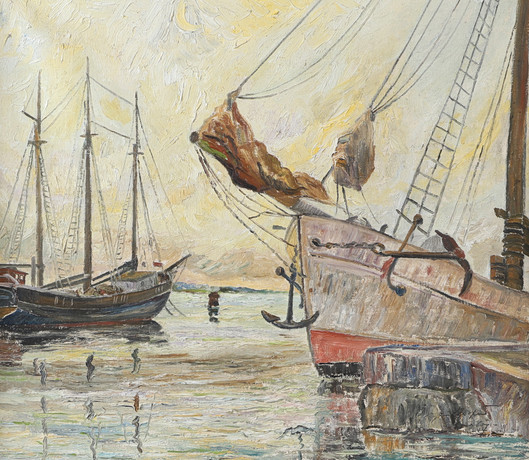 4367216. OSRAL BOYD ALLRED, watercolour, boats at port, signed Osral B Allred, dated 1986.