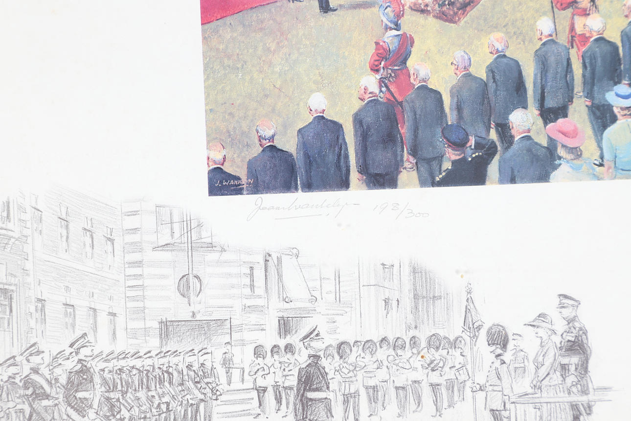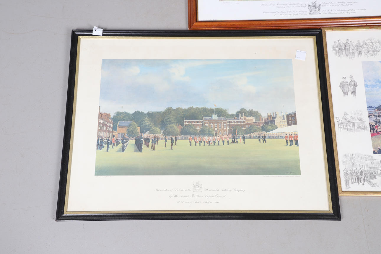 To include "The Captain Generals Visit" and two others, largest framed print measures 81.5cm x 66.5cm. (3).