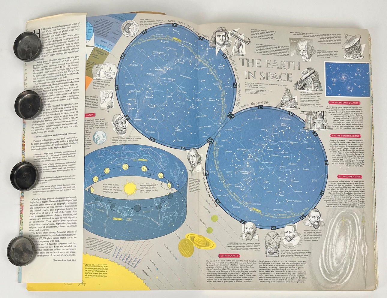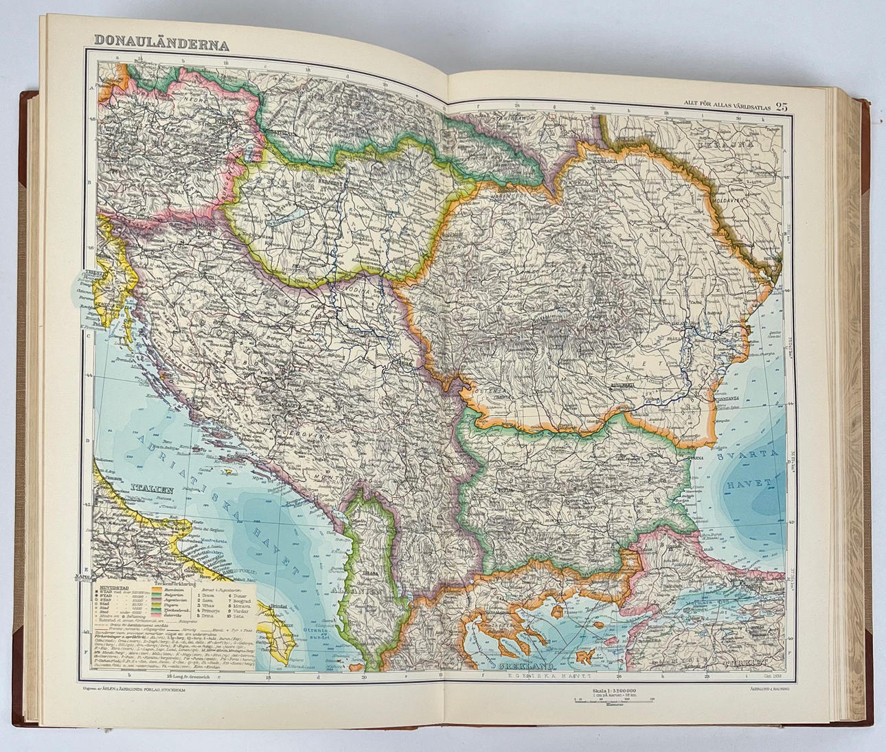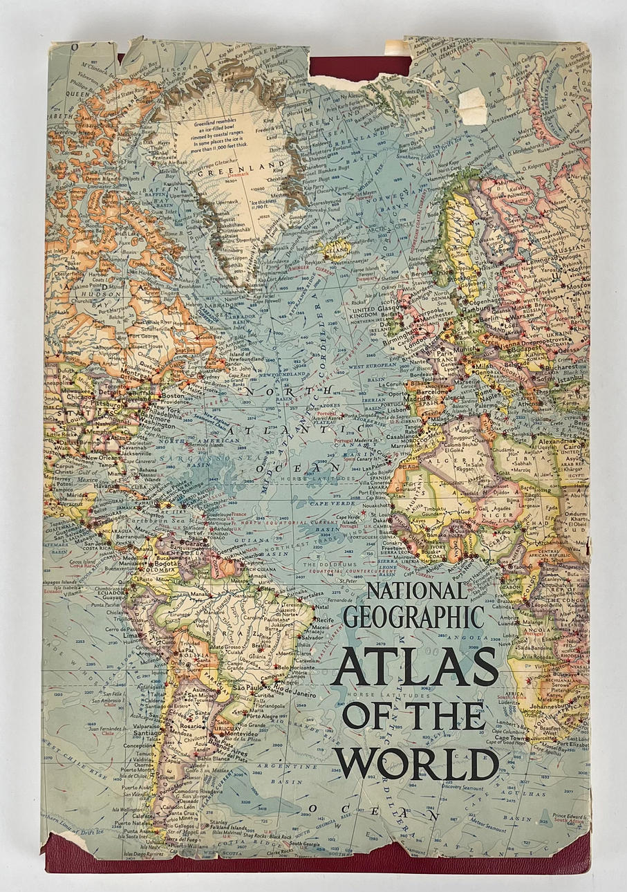 Åhlén & Åkerlunds förlag, Stockholm 1934, half-French band, ca. 40x27 cm. National Geographic Atlas of the world, 1963, ca. 49x32 cm.