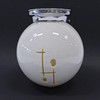 Spherical cup in white glass, openwork pattern with yellow underarm, height 23cm.