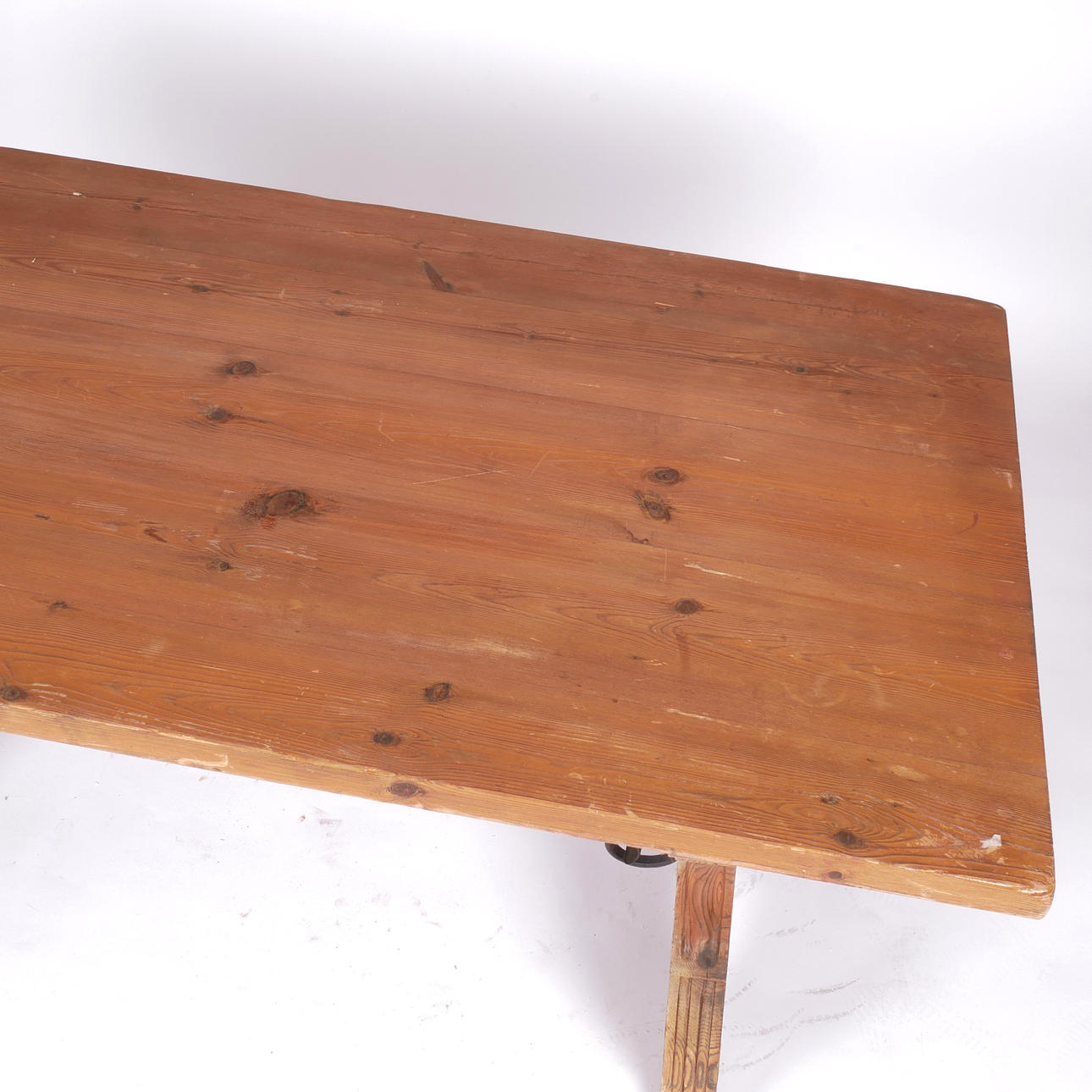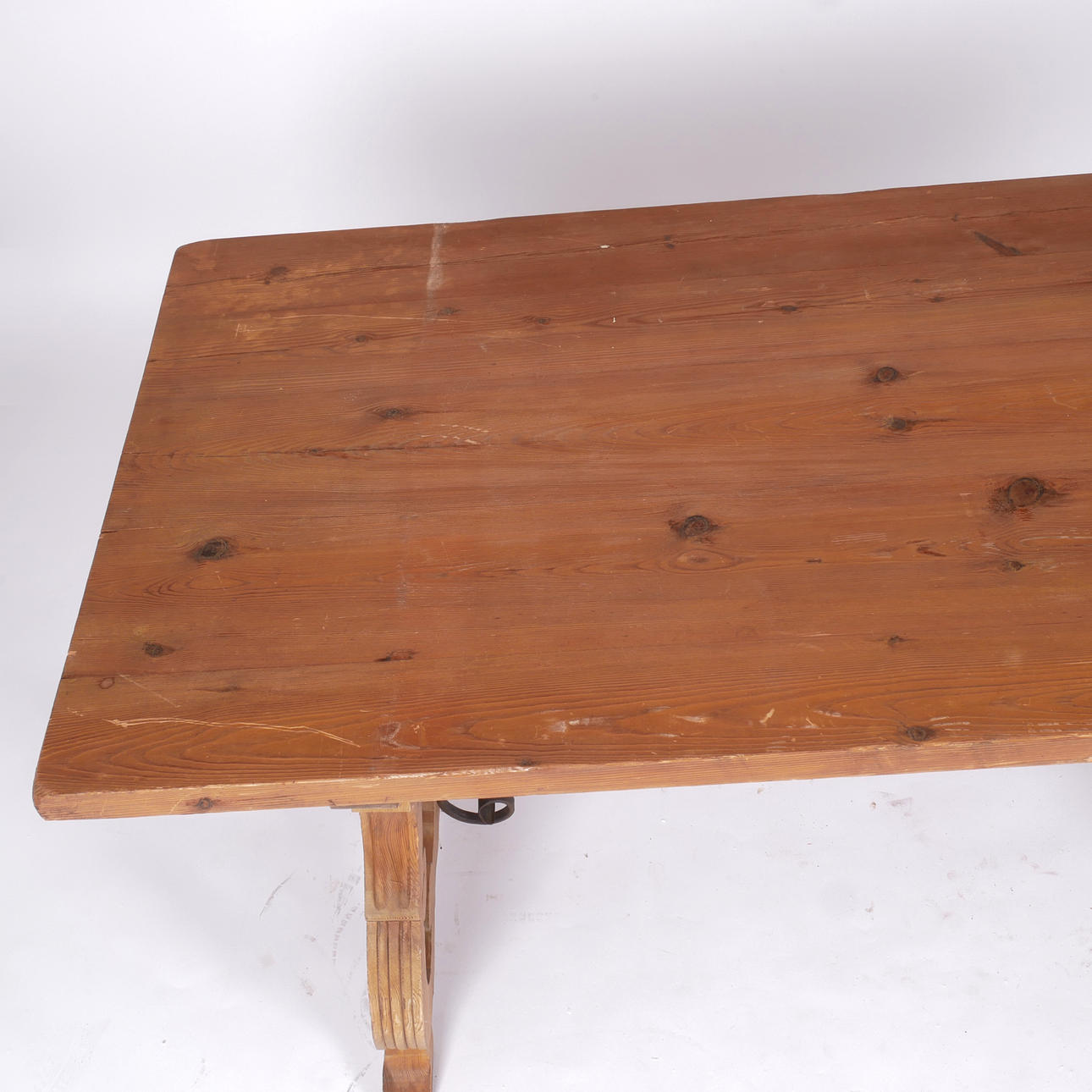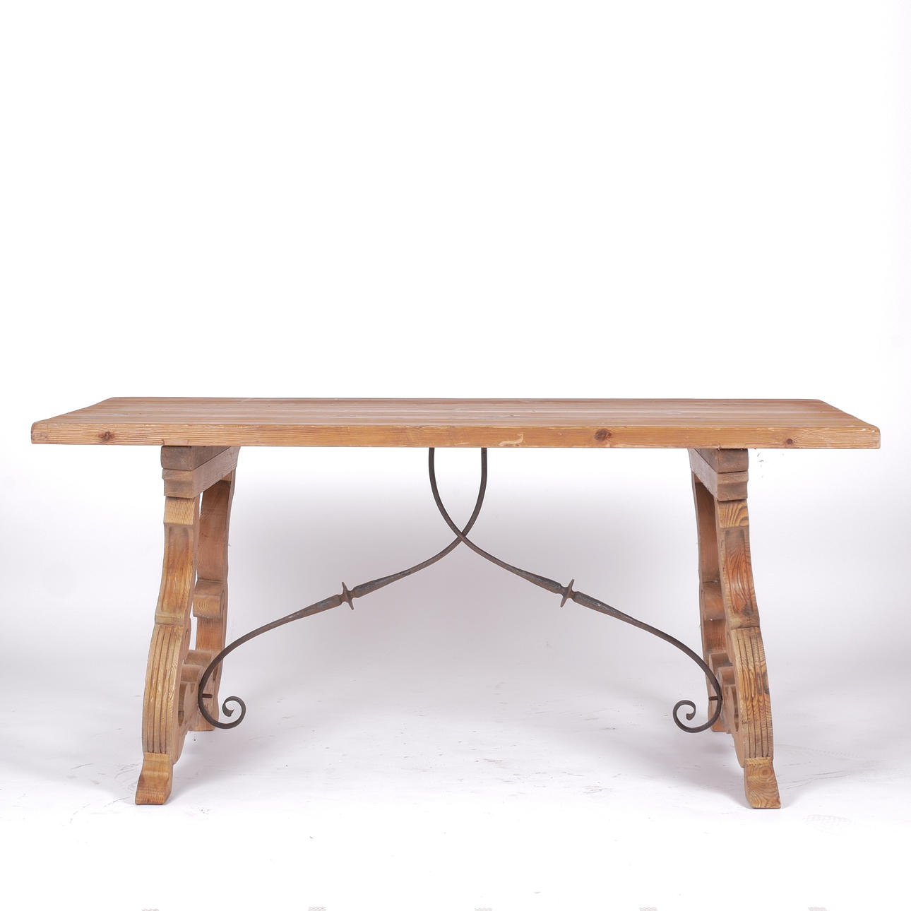 4367499. A baroque style table, pine and wrought iron, probably 1960s.
