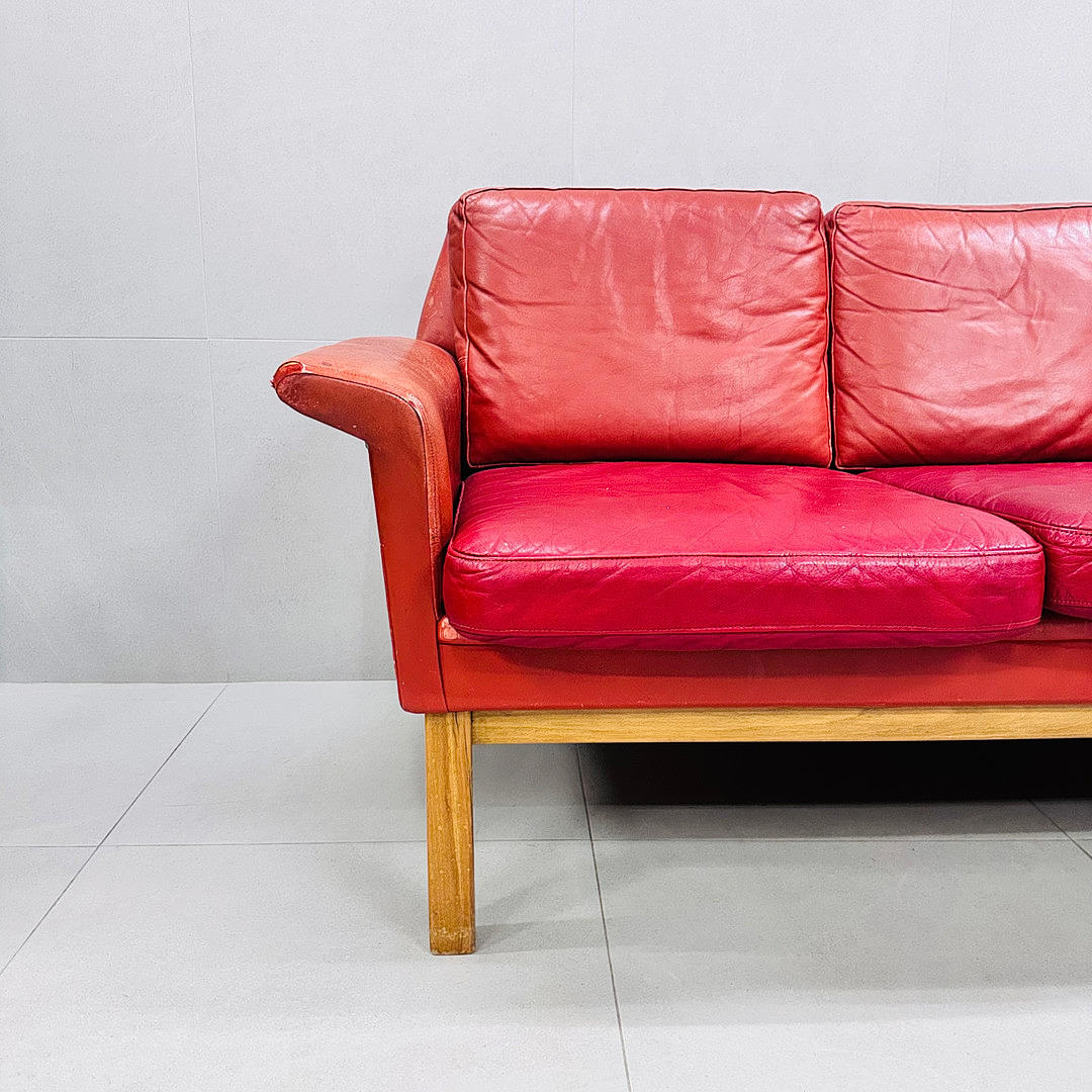 4367533. A sofa, 3-seater, red leather, 1960s.