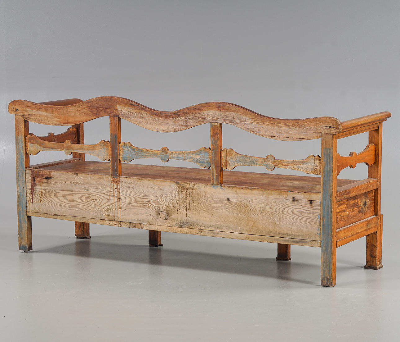 Age-related wear, scuff marks. Blocks under legs are partially missing.