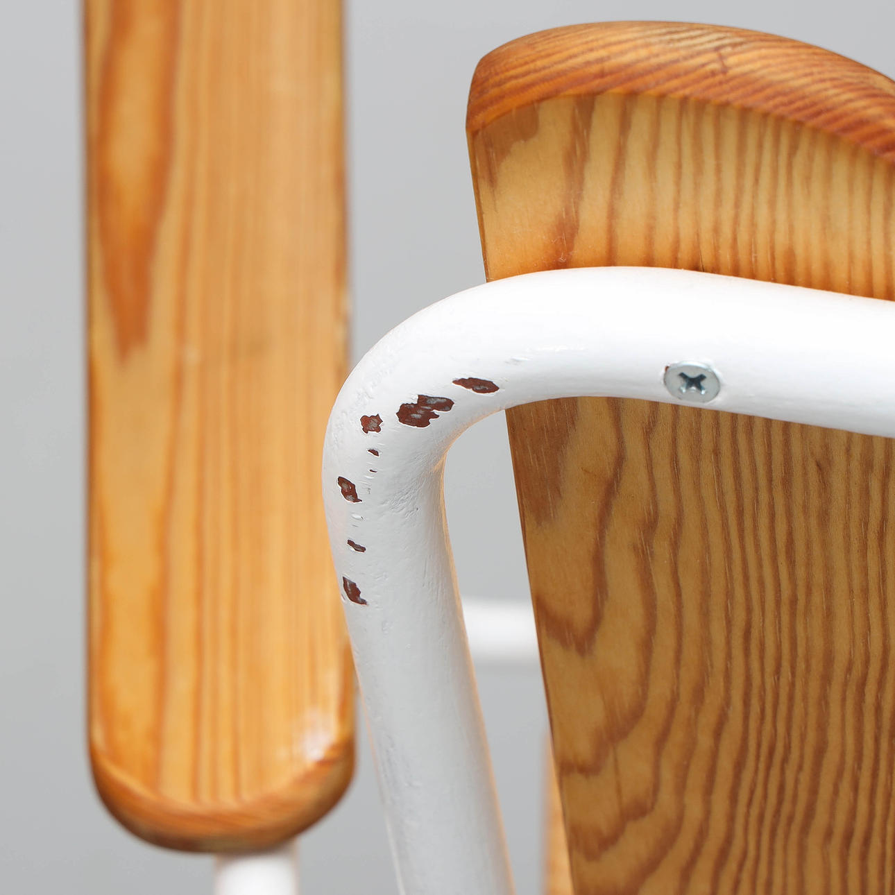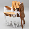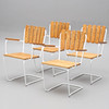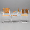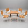 4367694. GARDEN CHAIRS & TABLES, 5 pieces, stackable, metal and pine.