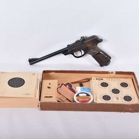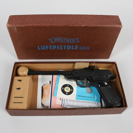 Model PP. Caliber 22lr. Additional No. 907645. Spout length 9,5cm. Fixed aim. Removable magazine. Black piston sides.