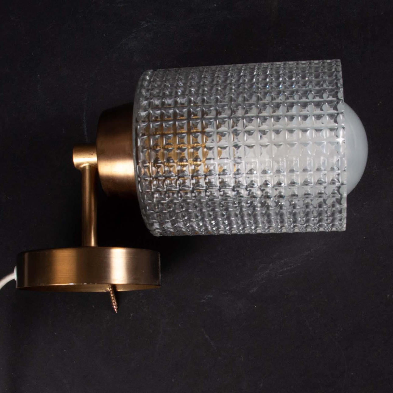 4367882. WALL LAMP, brass and waffle glass, 60s.