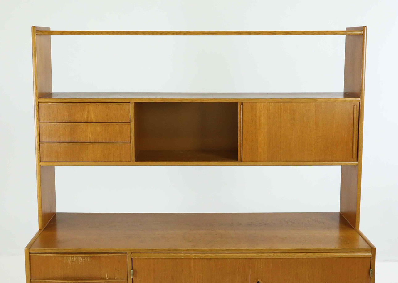 Two parts. Teak veneer. Length 133 cm Depth 42 cm Height 70 cm and 155 cm.