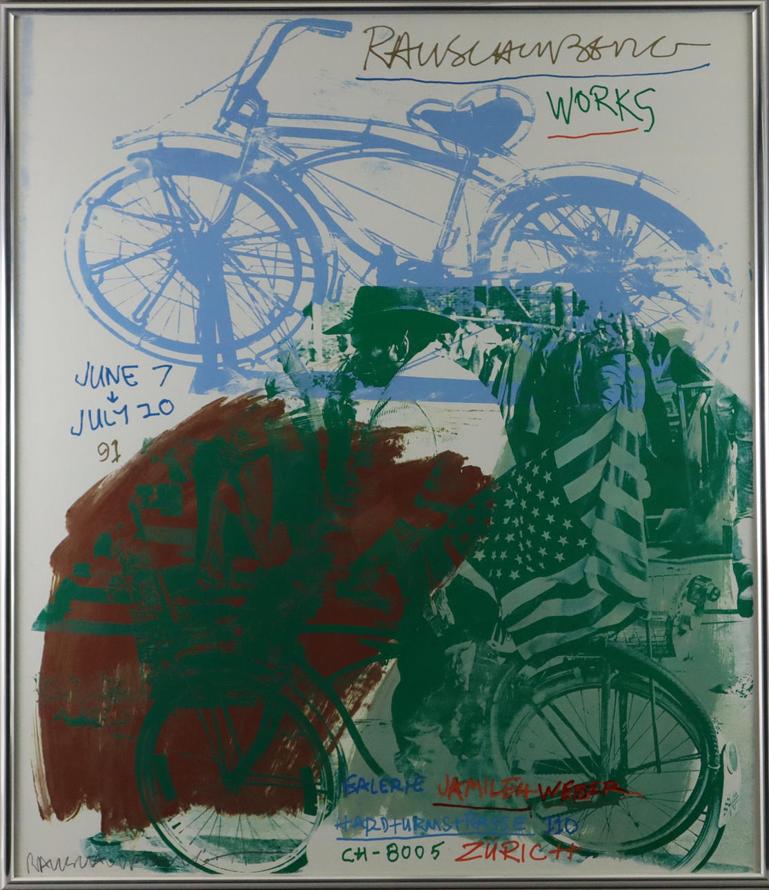 signed by hand at the bottom right, illustration ca. 132.5 x 115 cm, framed under glass, silver metal strip, total dimensions approx. 136 x 118 cm