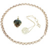A 925 silver Greek key necklace together with a silver lapis lazuli and gemstone pendant and a white metal stone set pendant on a silver chain.