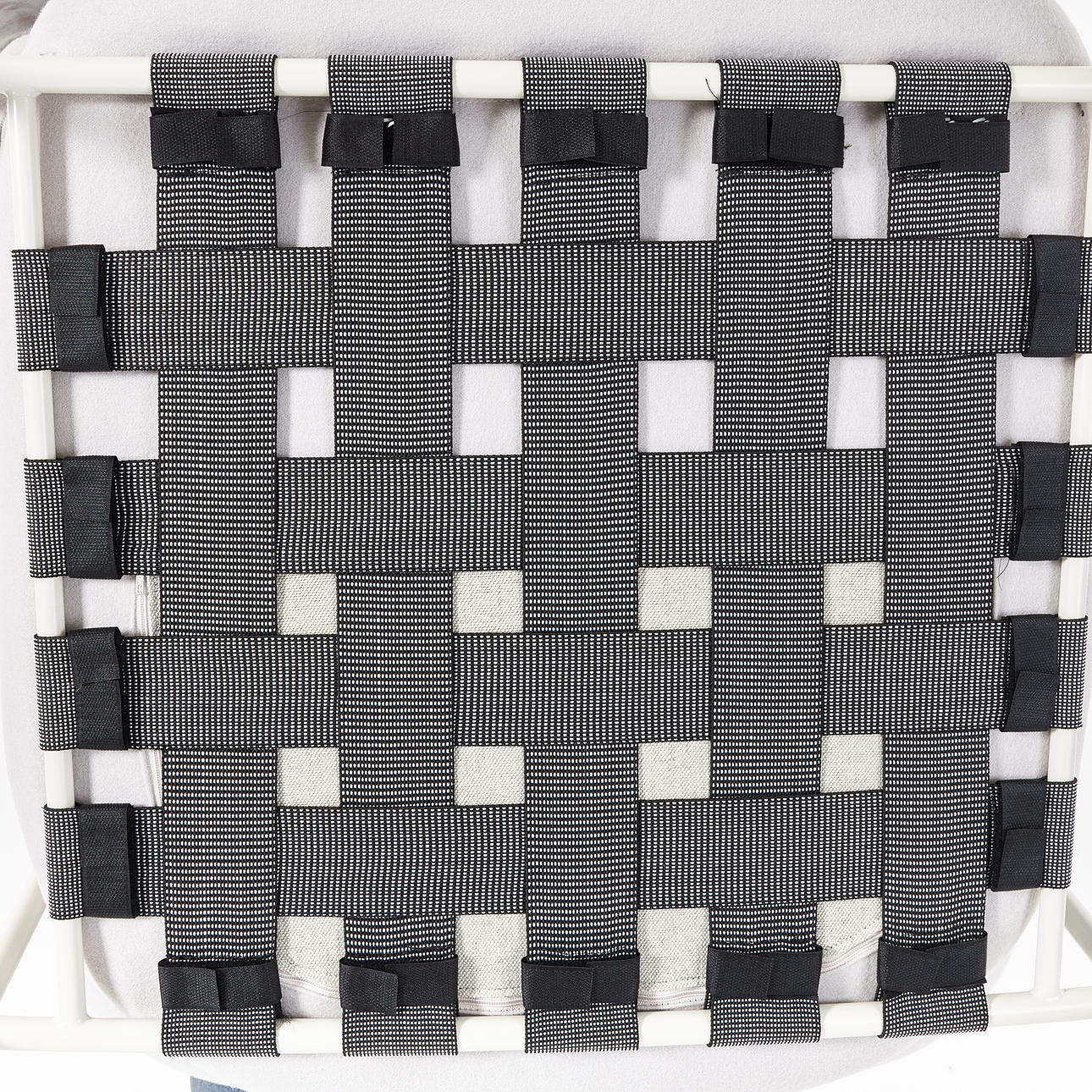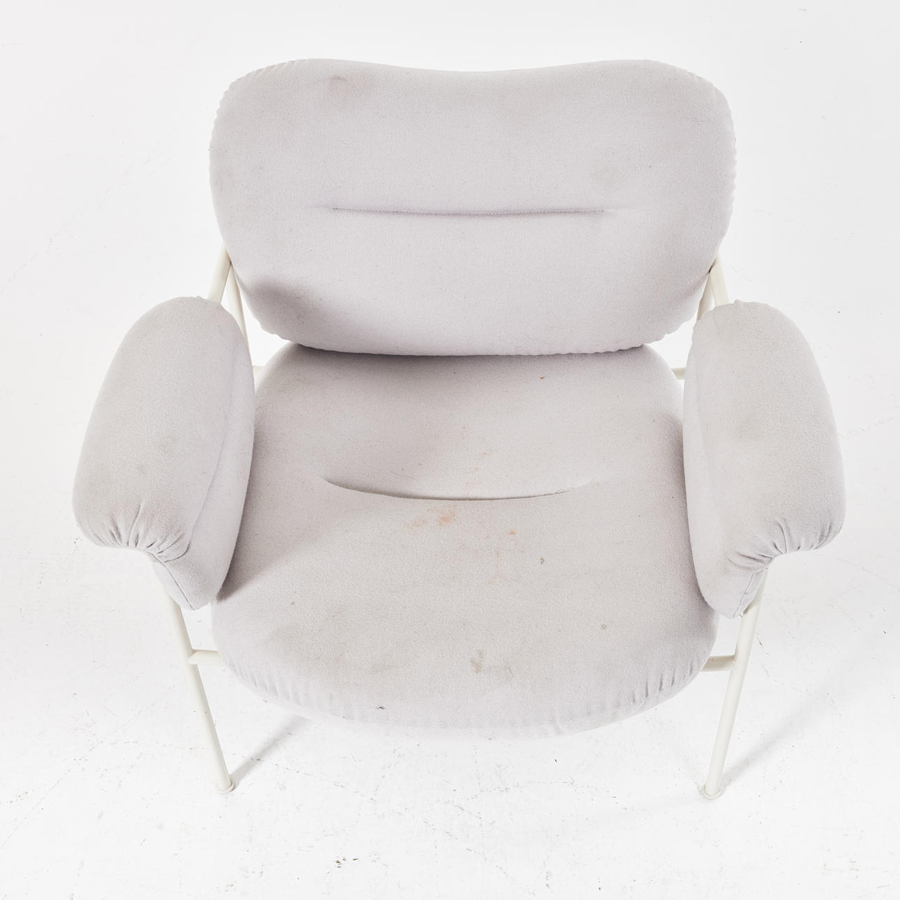 White lacquered frame, textile upholstery, dimensions approx. 75, 80 x 80 cm.