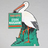 'Free Gifts From Stork Margarine Gift Coupon with every Pound', the 20th Century shaped self-standing advertising sign mock-up on board depicting a stork holding a sign, stamped to the reverse with copyright for 'James Laworth & Bro., LTD. London.', 66.5cm x 44cm.