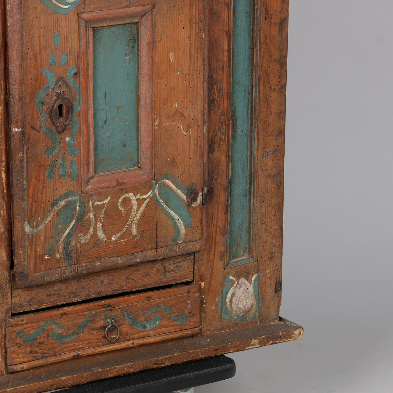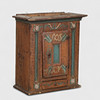 Tobacco cabinet of original painted pine with dating from 1797, front with filling door and drawer, interior with 2 shelves, original brackets with lock replaced, no key. H.77 x 70 x d.39cm.
