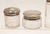 General age and usage wear, silver tops have dents in places, glass with some marks and scratches.