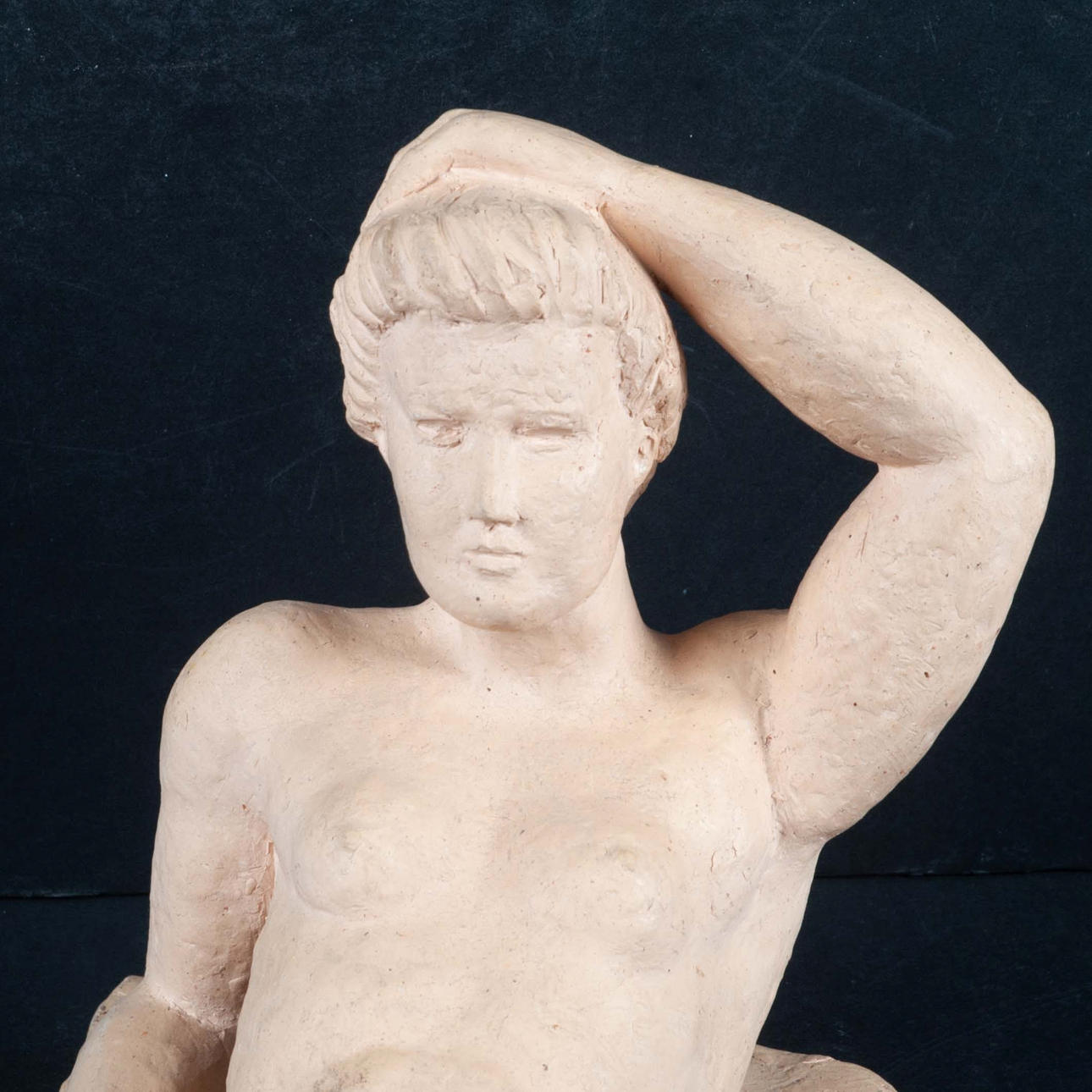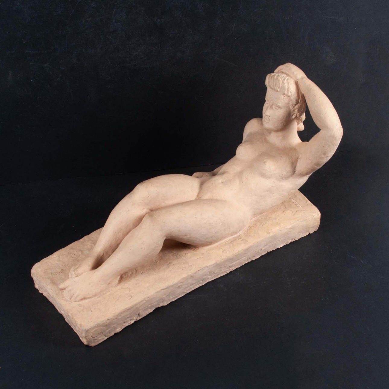 Resting female figure in supine position, arms behind head. Executed in terracotta with hand modeling. Signed “Bernard Anderson” and dated 1944 in the estate.