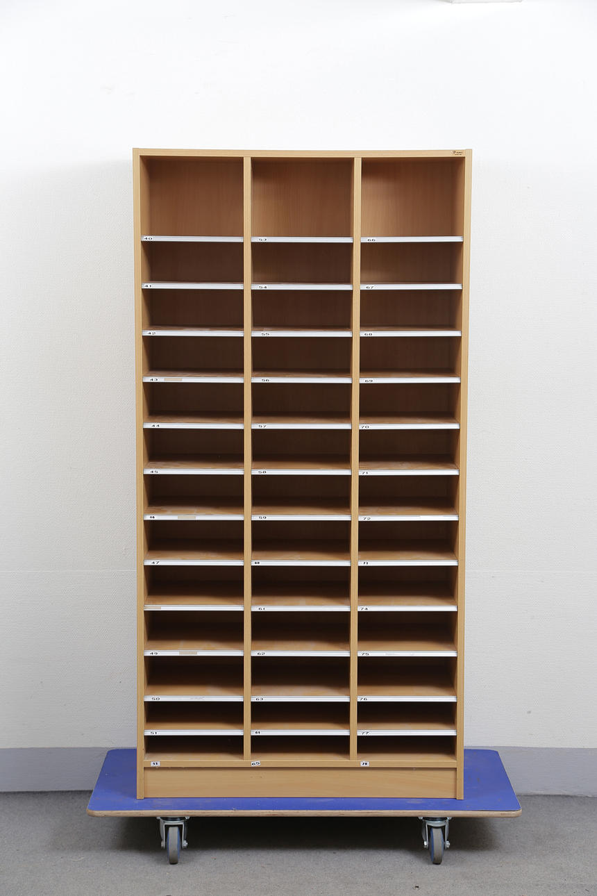 4369339. SHELF WITH MANY COMPARTMENTS, BOOK VENEER, CONTEMPORARY.