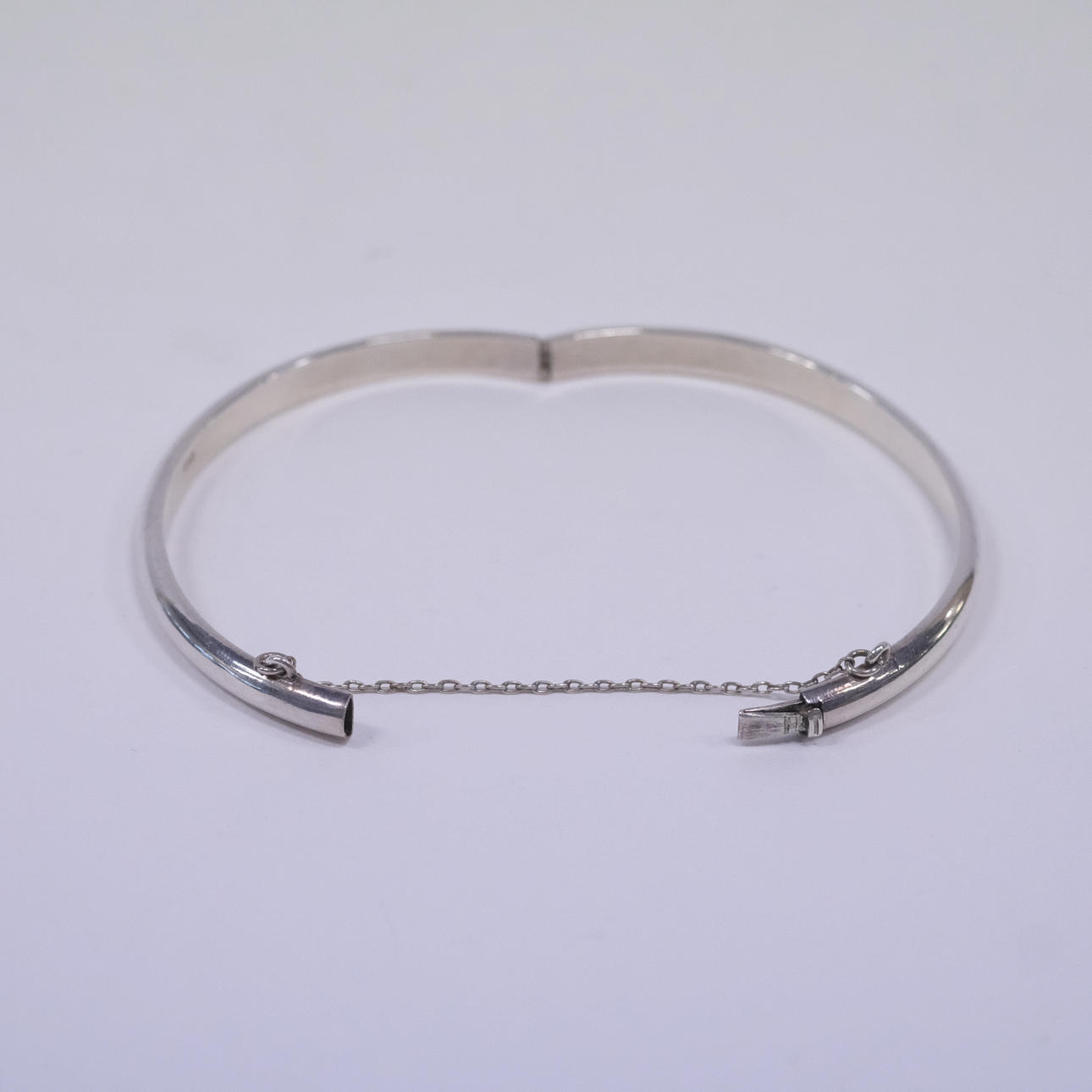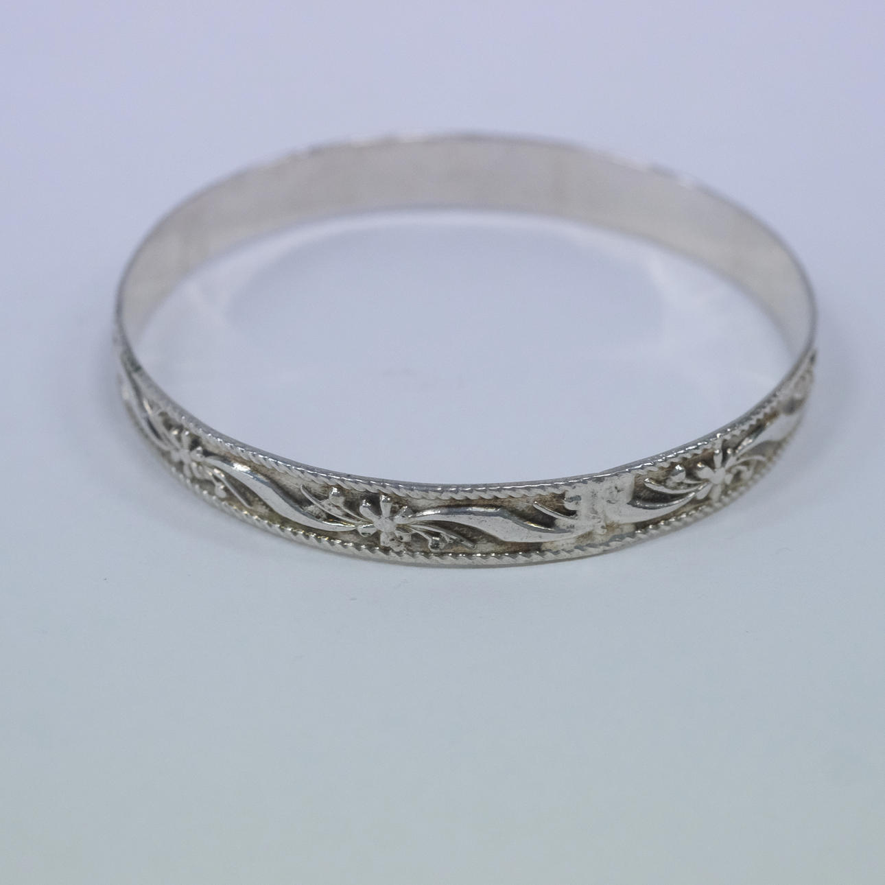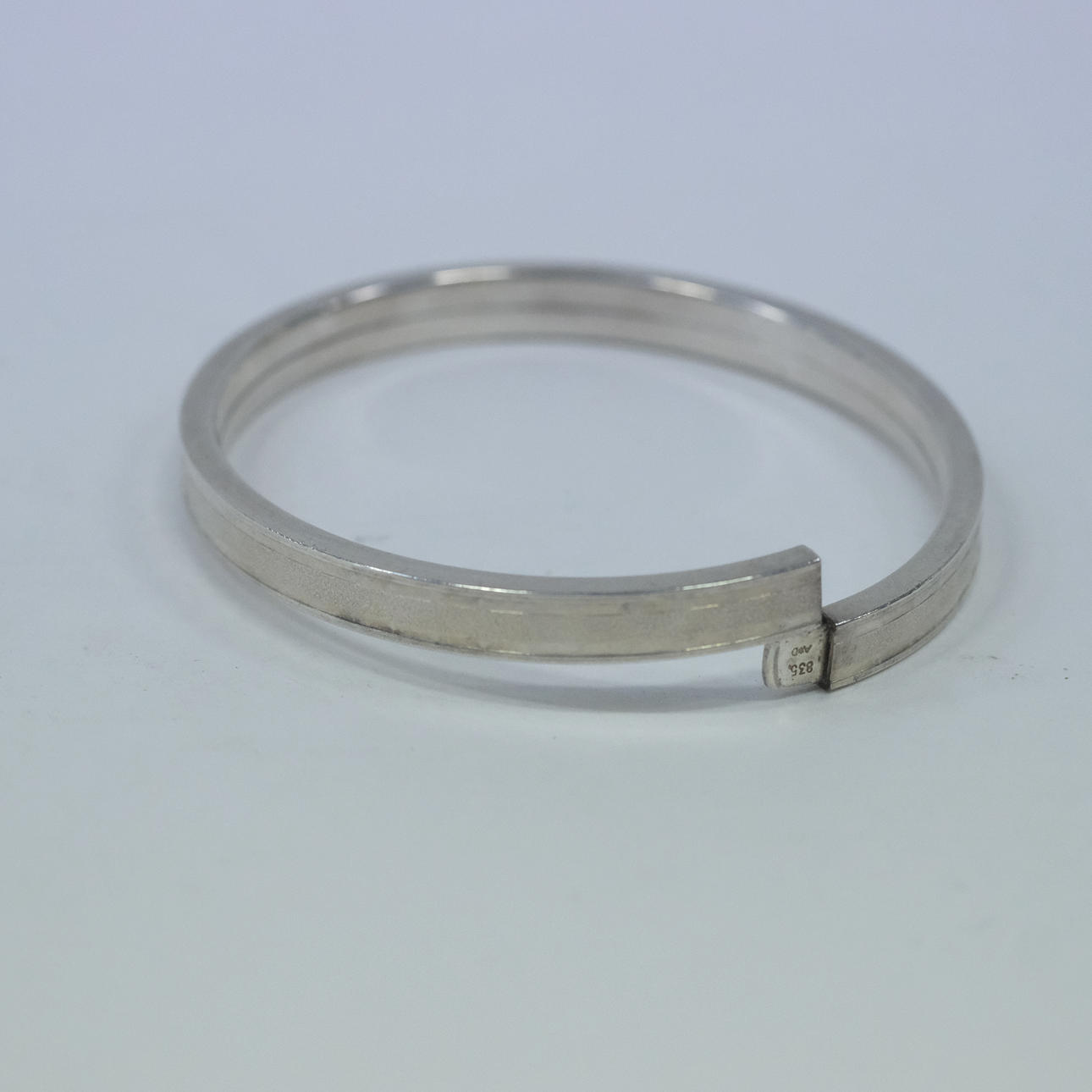 Two smooth bracelets, diameter approx. 6cm, openable and two bracelets with patterns, diameter 6 and 7cm, one of which can be opened, weight approx. 64 grams.