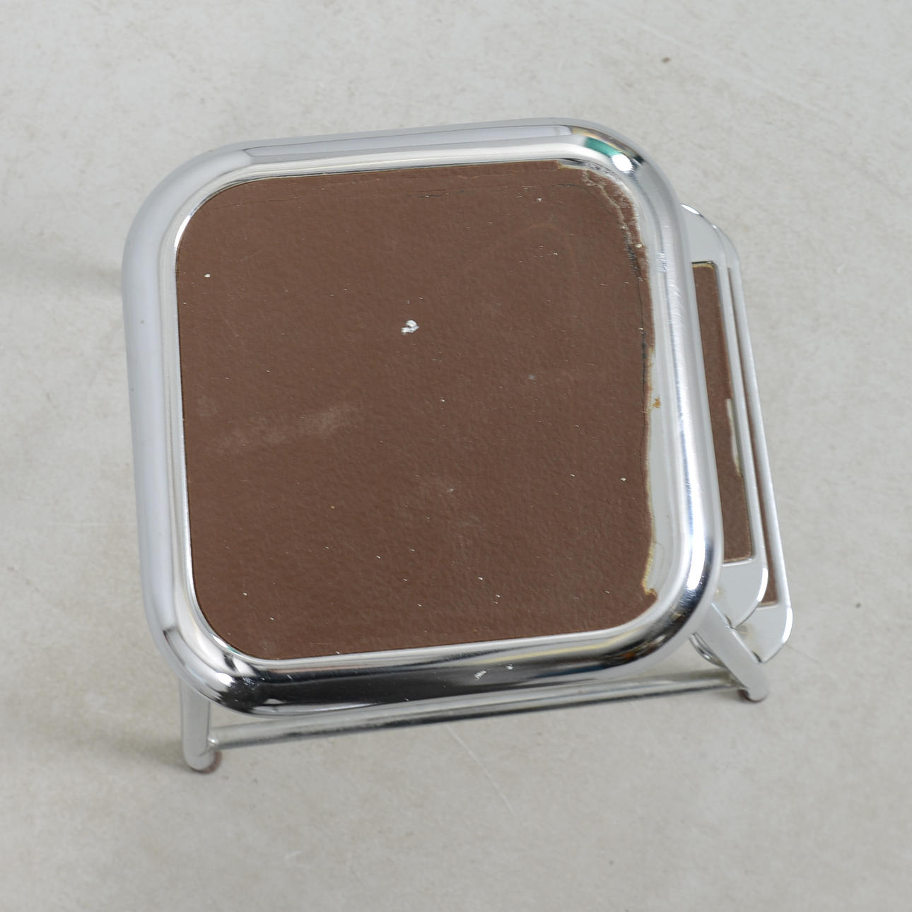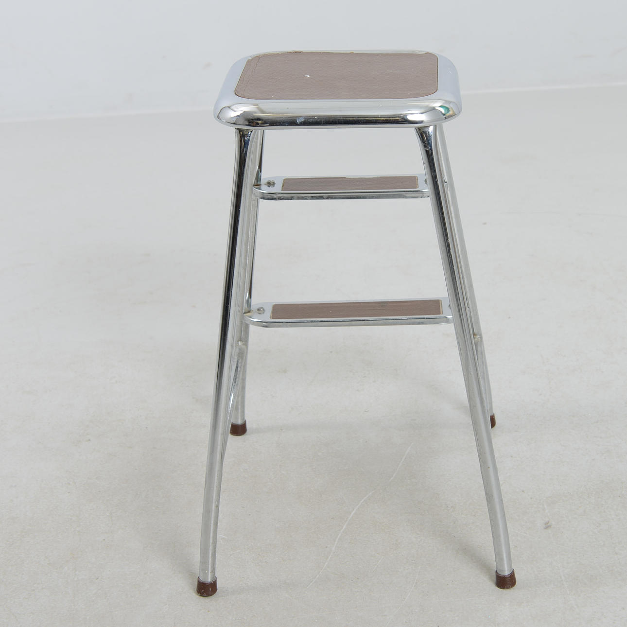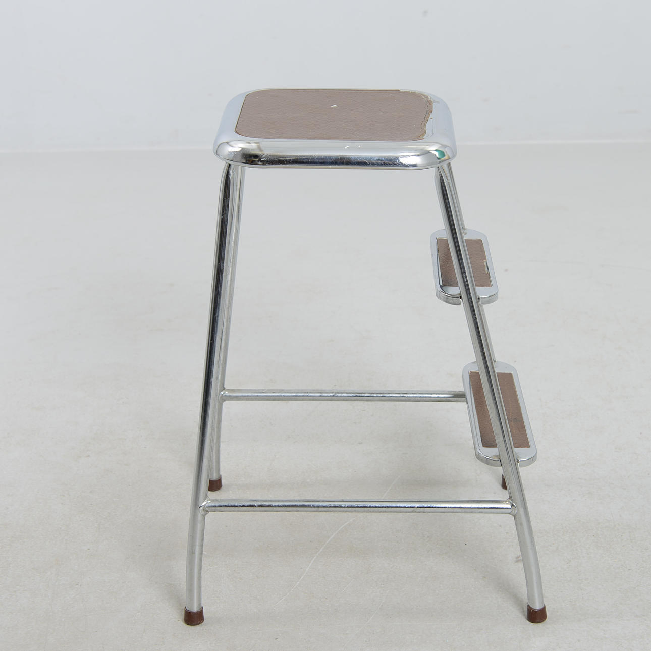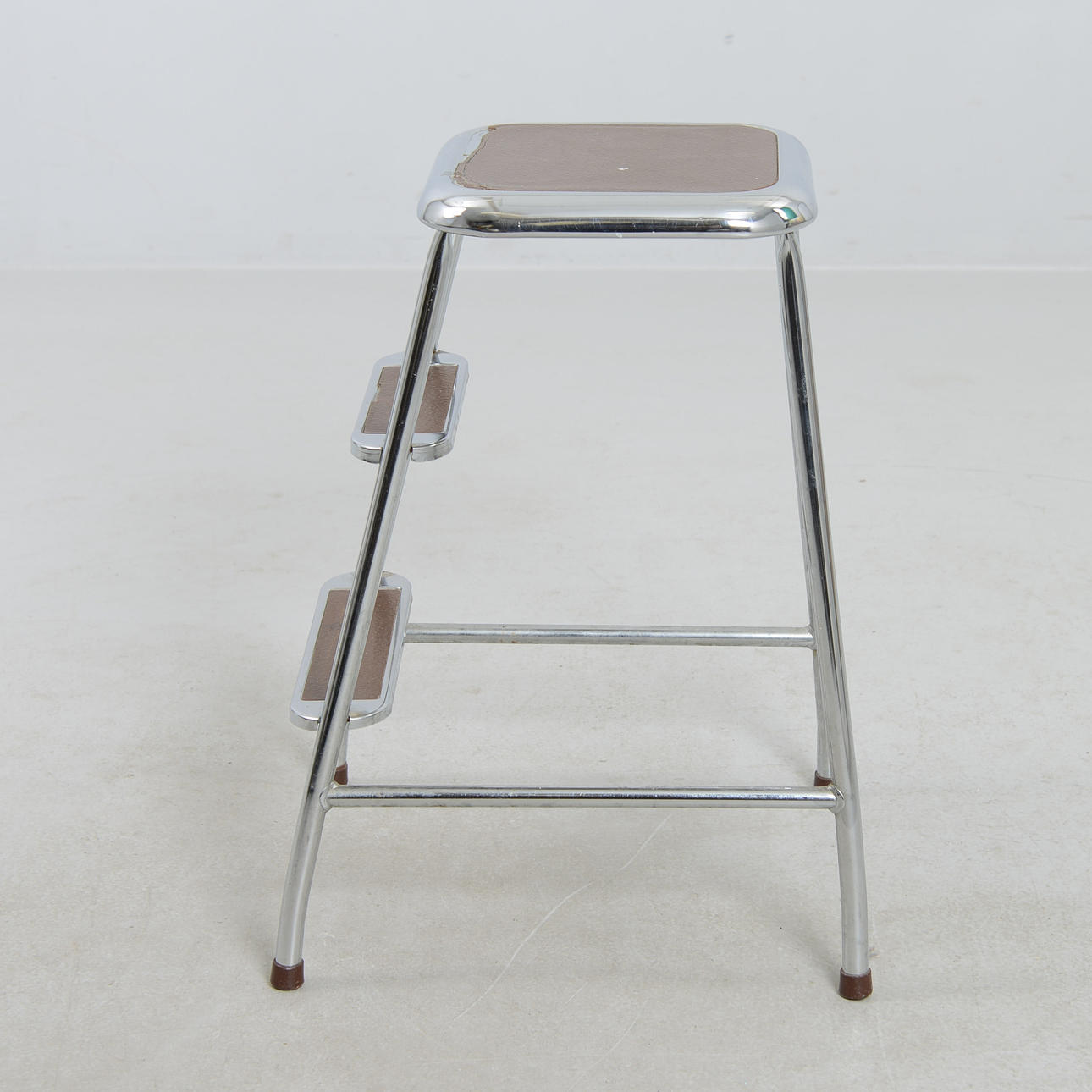 Chromed metal frame with laminate-clad steps in cork imitation. Height 59 cm.
