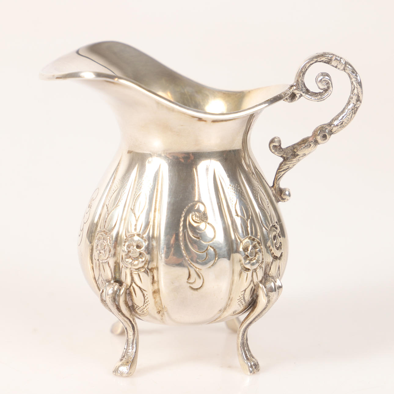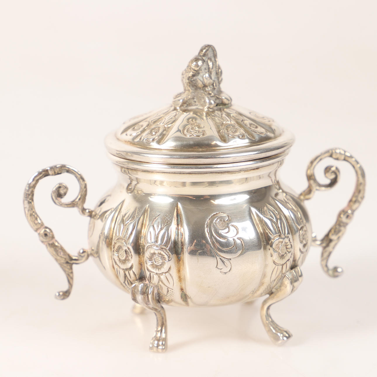COFFEE SET, 3 pieces, silver with relief decor.
