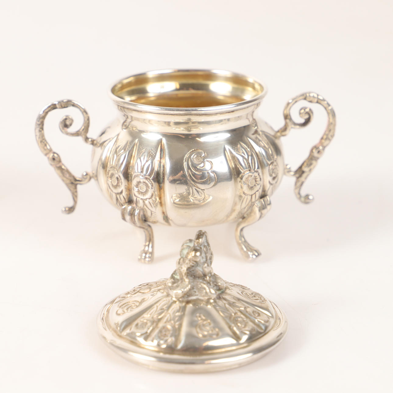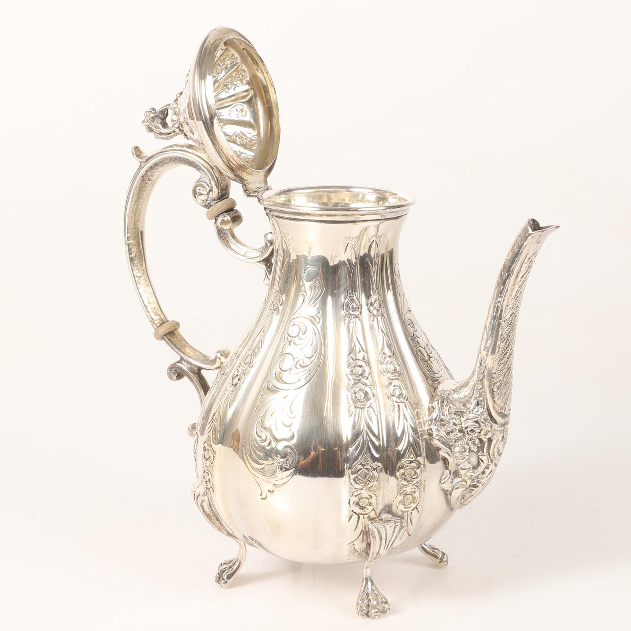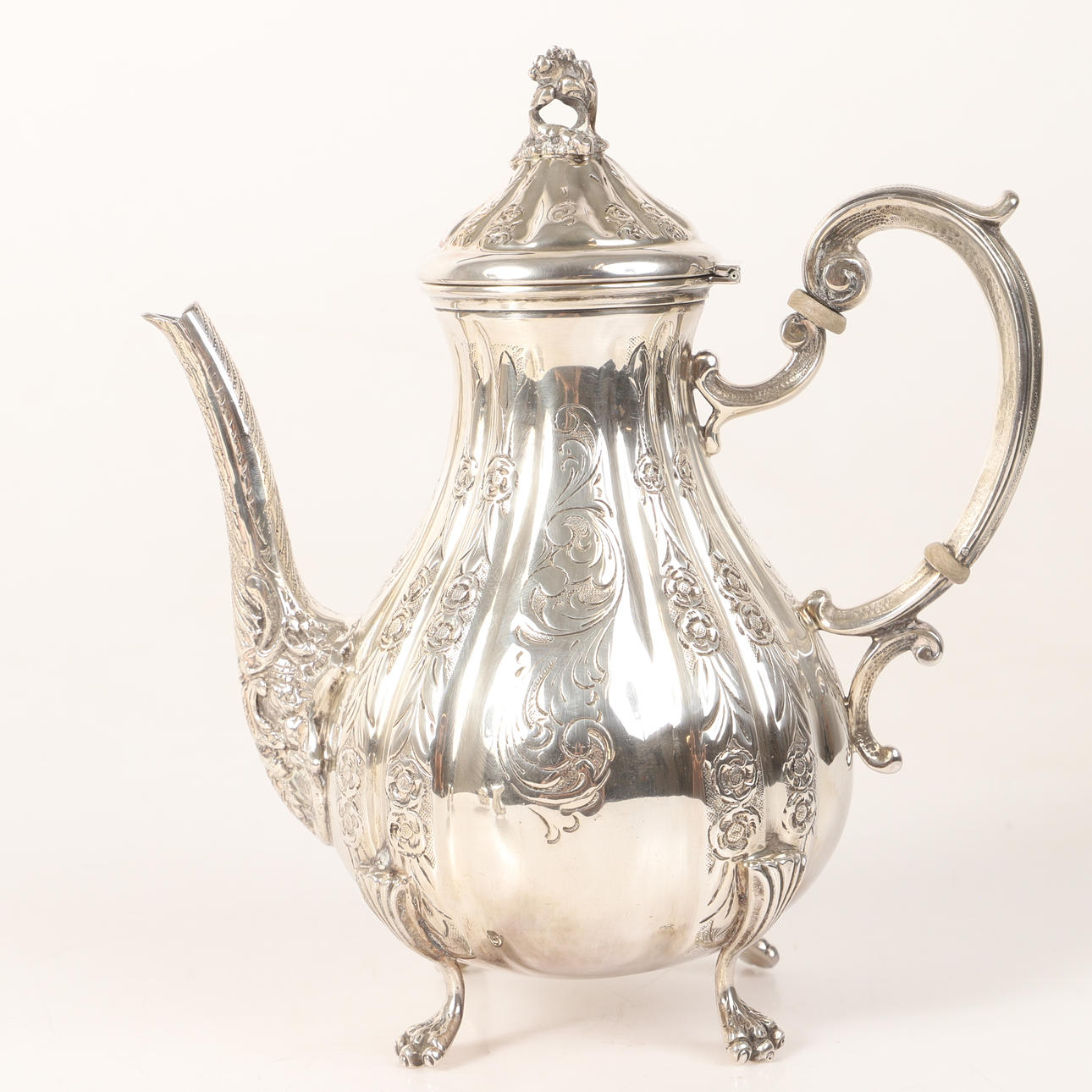 4370038. COFFEE SET, 3 pieces, silver with relief decor.