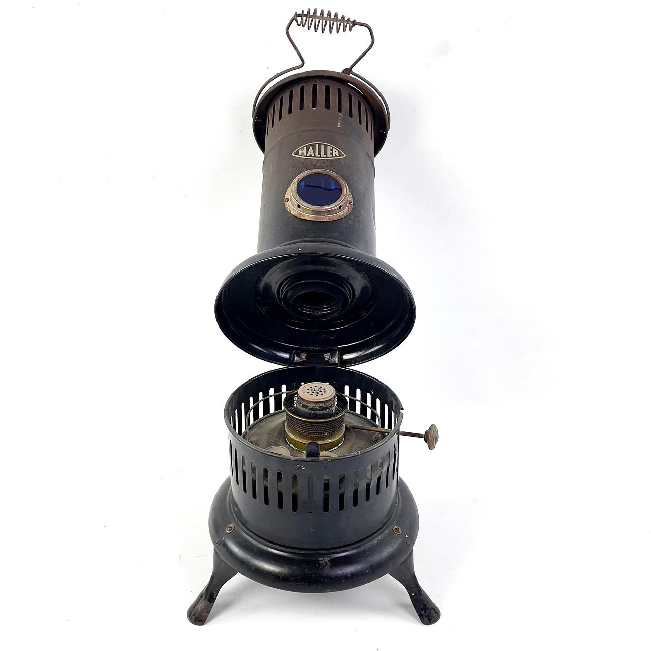 Kerosene stove/stove, height approx. 58 cm, diameter approx. 30 cm.