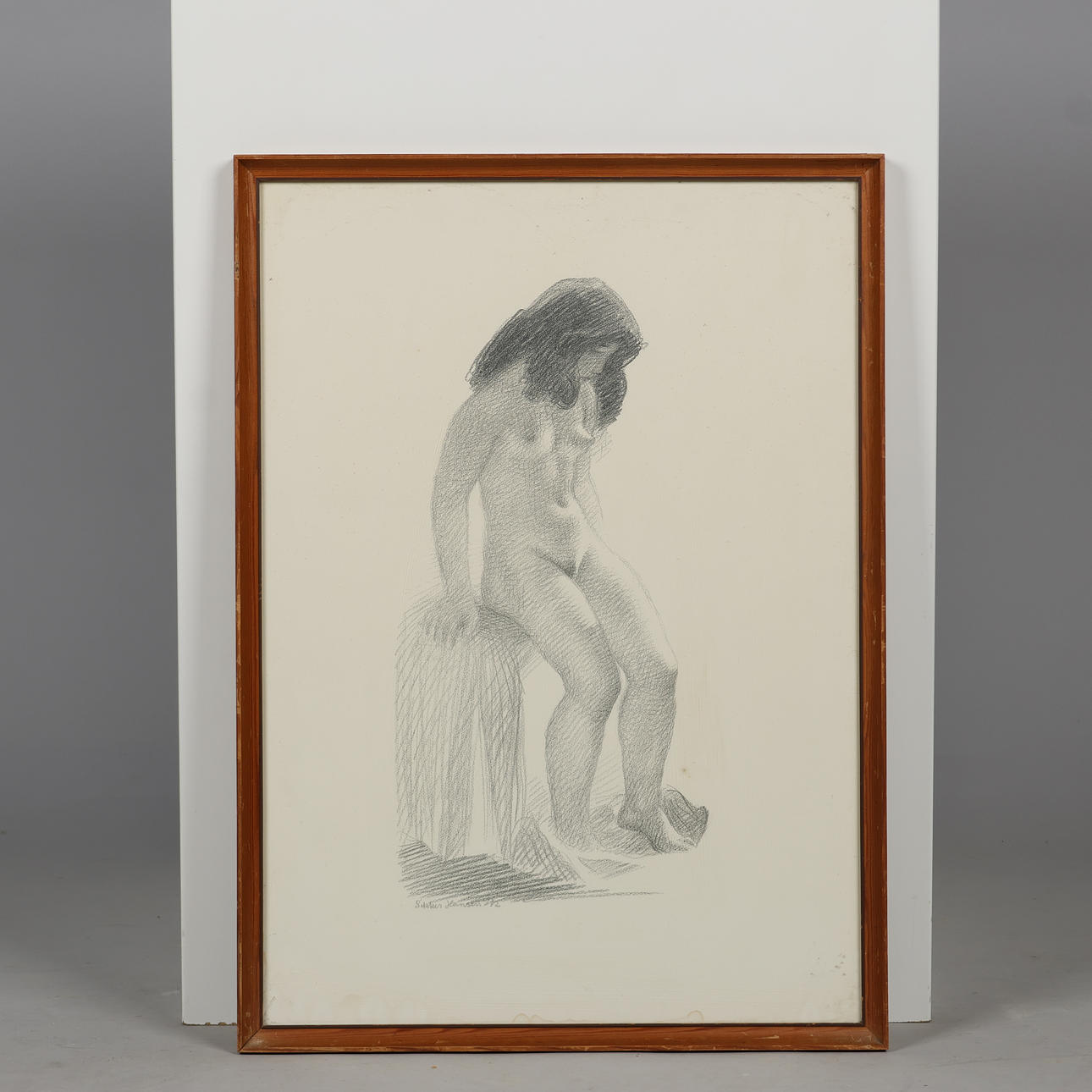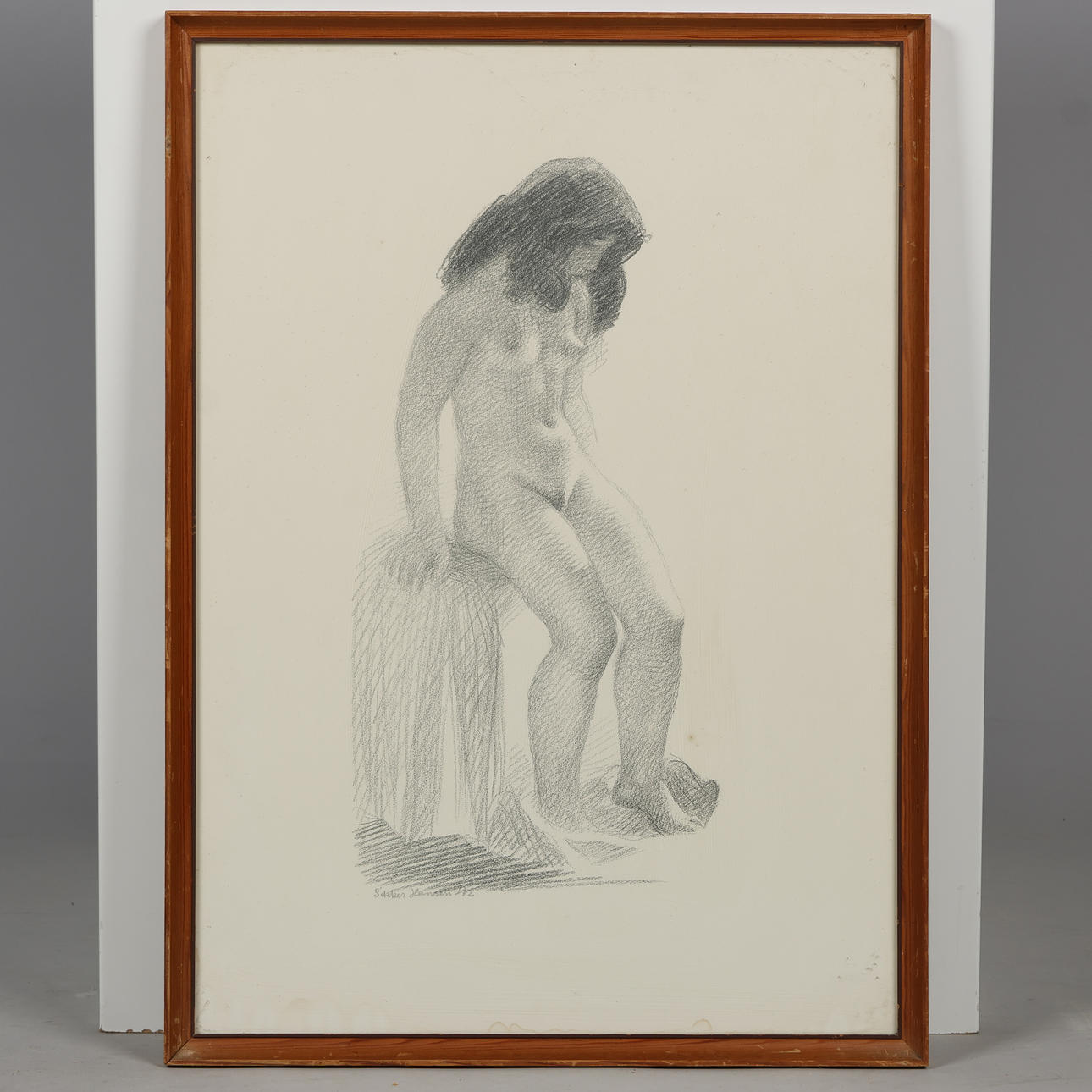 Motif with nude woman by Aage Sikker Hansen, lithographically printed, signed in lead. Light dimensions 55 x 39 cm, framed dimensions 58,5 x 42,5 cm.