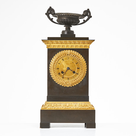 Table clock in brass marked “Guggenbühl Merian” with key. Height 11 cm.