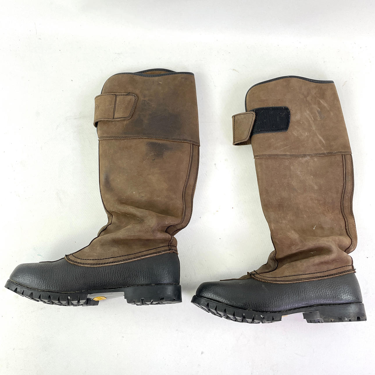 A pair of leather riding boots from Graninge. Unknown size, inner dimensions approx. 28 cm. Height 47 cm, length 32 cm.
