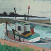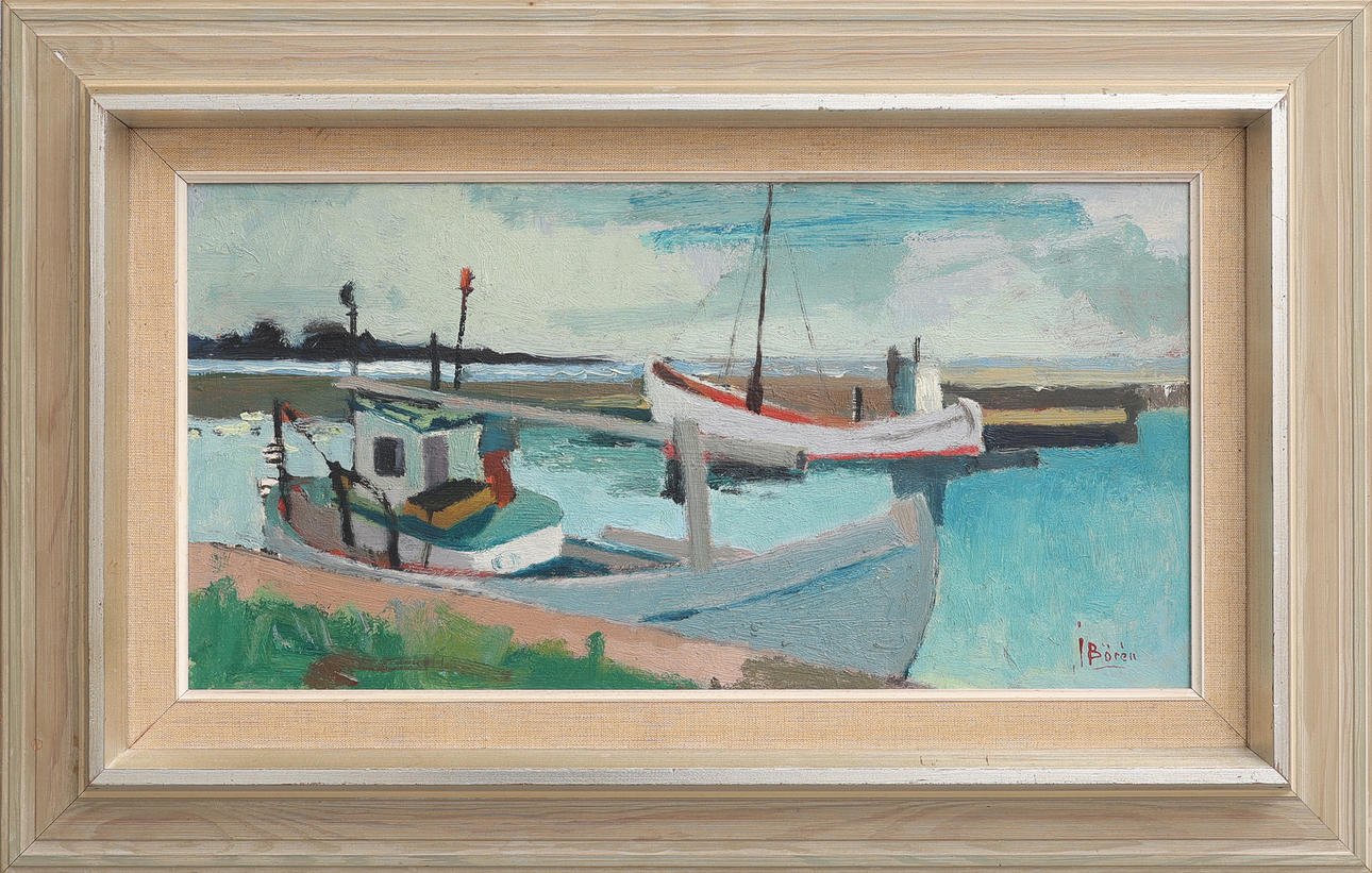 4370892. JOHN BÖRÉN. OIL ON PANEL, HARBOUR MOTIF, SIGNED.