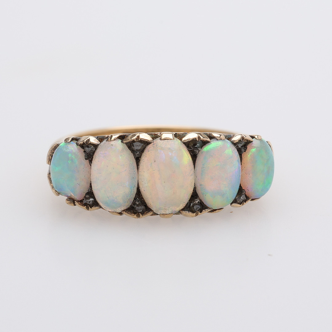 4371031. RING, 18K GOLD & OPALS, VICTORIAN, Approx. 4.5 g.