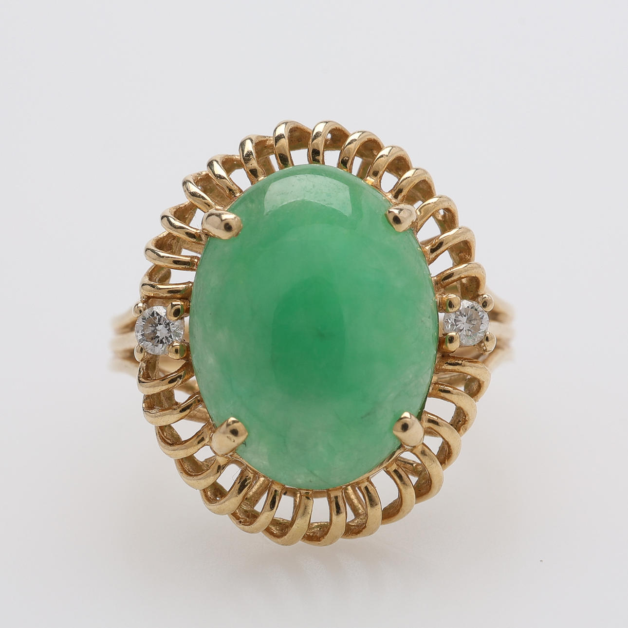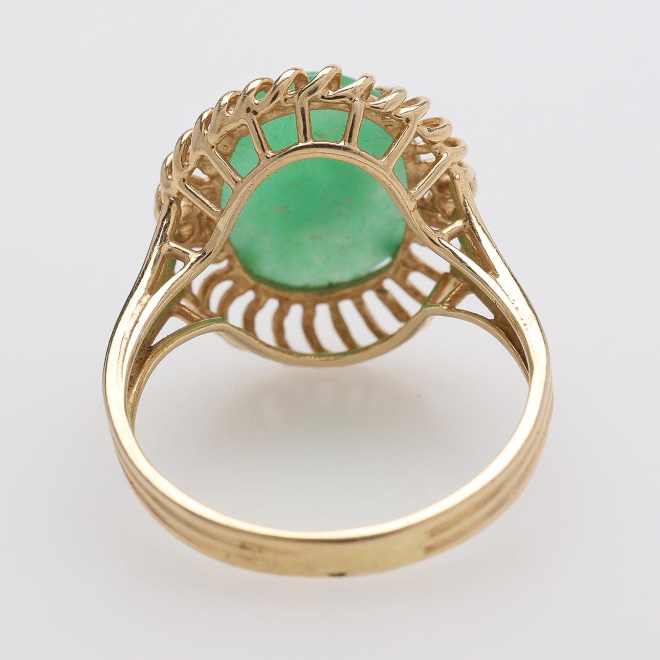 4371129. RING, 18K GOLD, NEPHRITE & SMALL DIAMONDS, Approx. 3.8g.