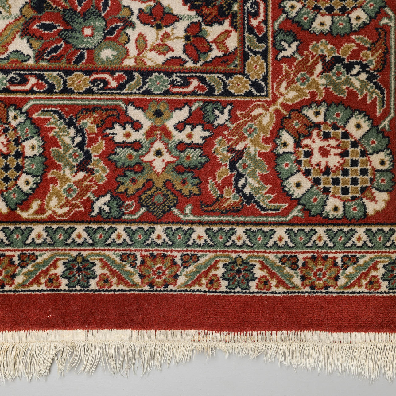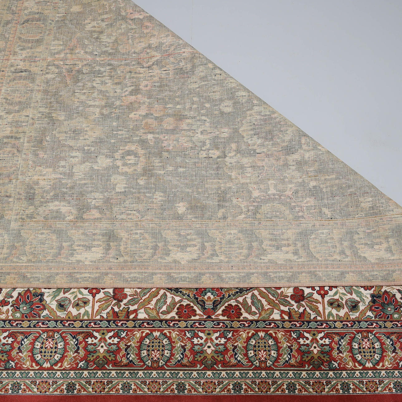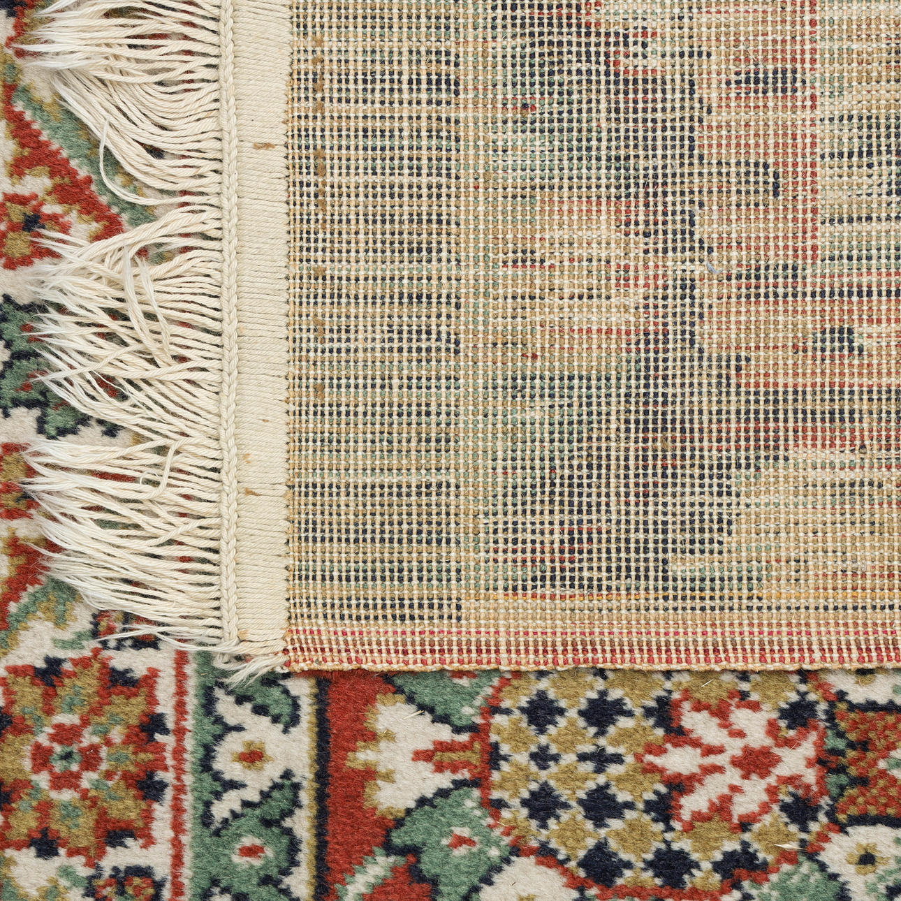 Normal wear and tear, fringes partially severely worn, surface wear.