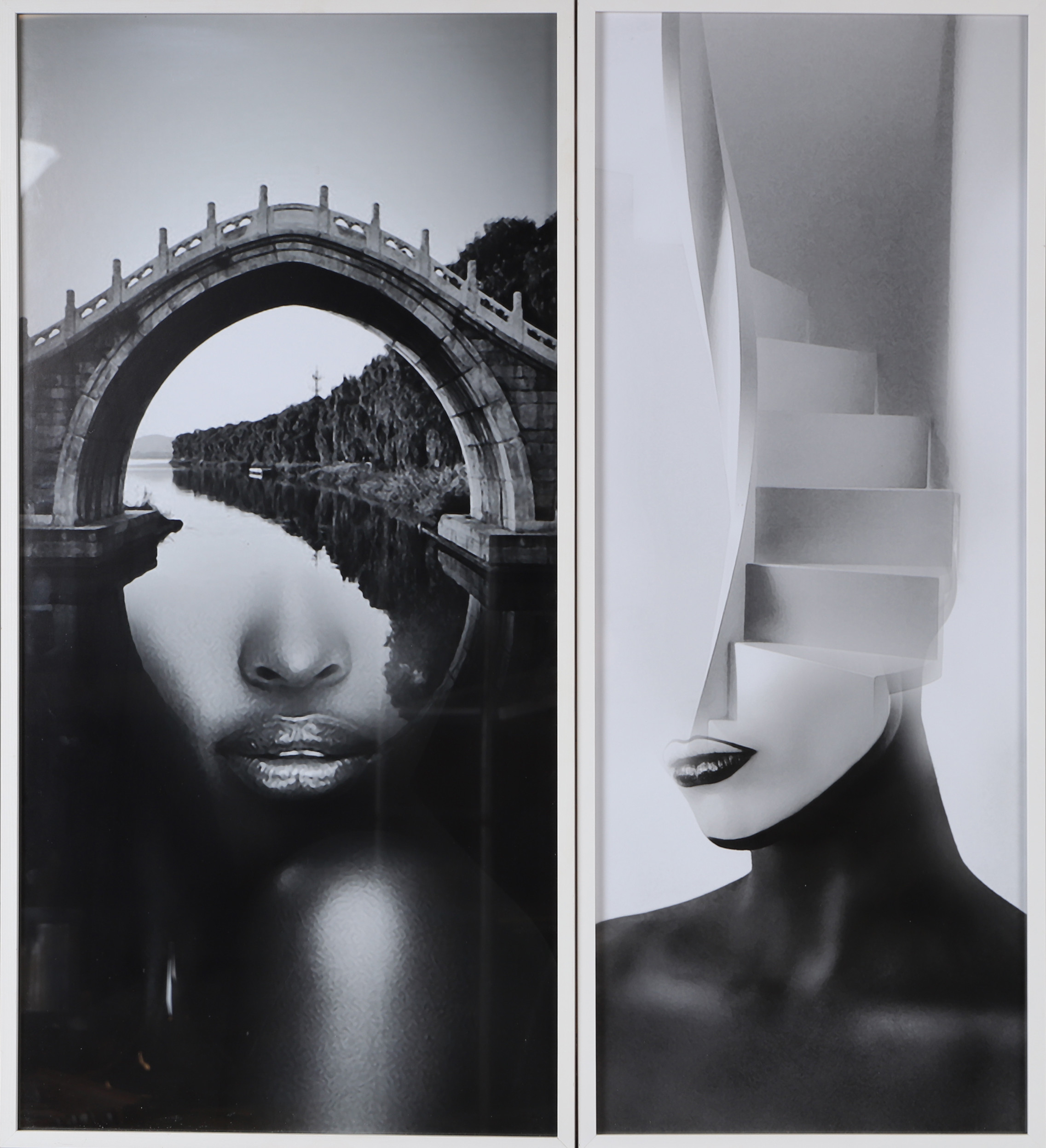 4371243. OKÄND KONSTNÄR. 2 pieces of composition with face, print.