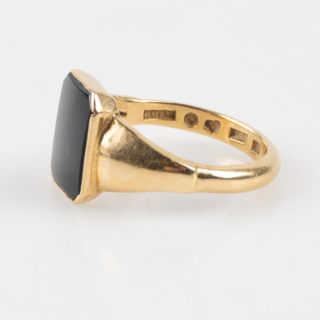 Inlaid with onyx, stamped Karlskrona 1947. Ringstrl. about 20.25 mm. Weight about 7.3 grams.