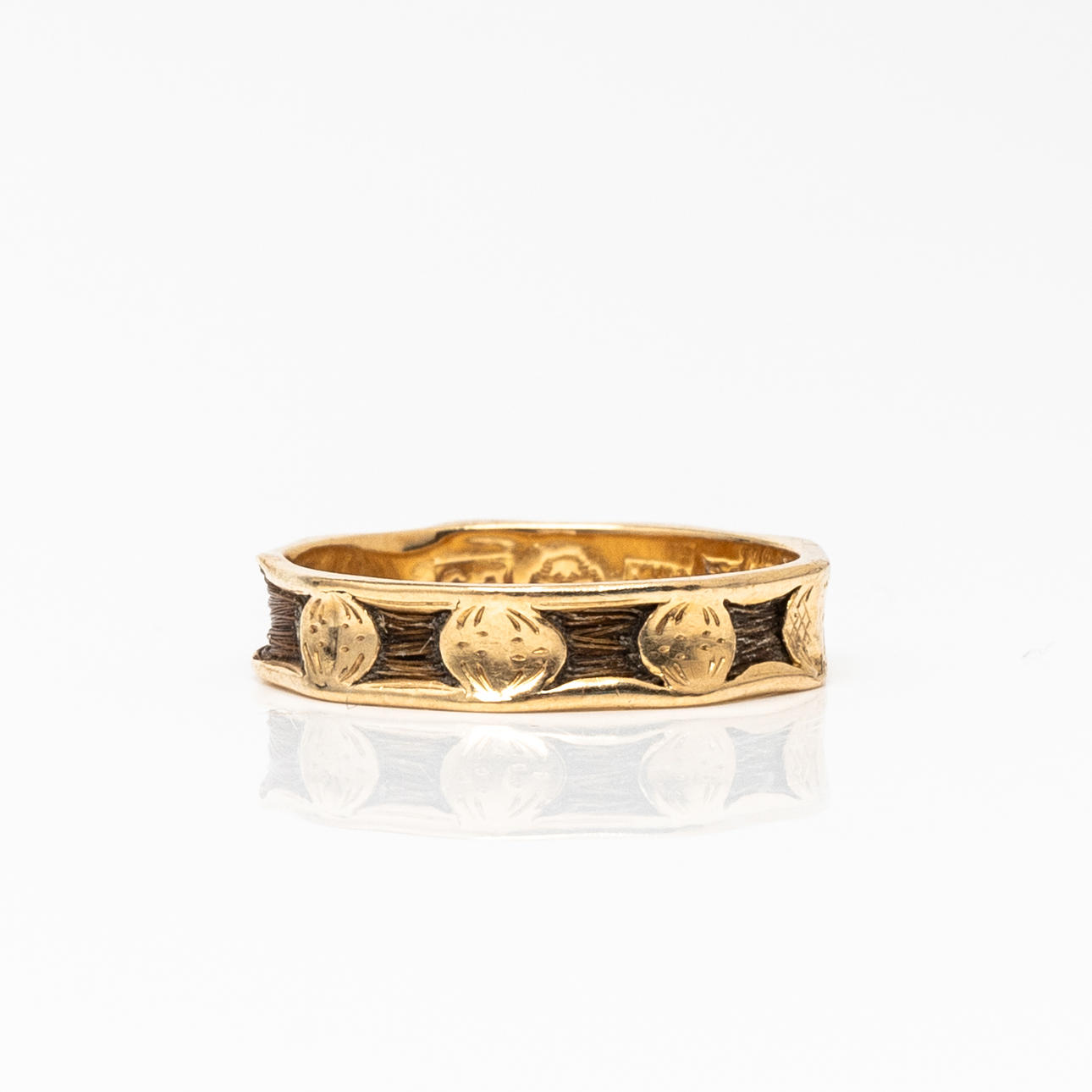 RING, marked CCC 18K gold, hairwork, 1859.