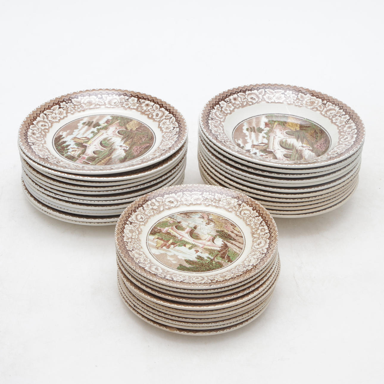dinner plates 12 pcs, deep 12 pcs, side dishes 11 pcs, terrines 3 pcs, Other parts 5 pcs.