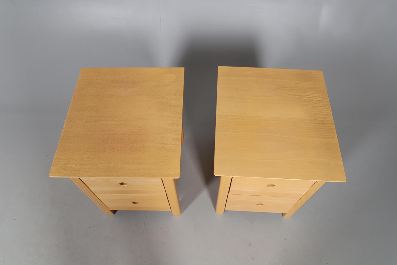 TWO BEECH FINISH BEDSIDE CHESTS OF DRAWERS.