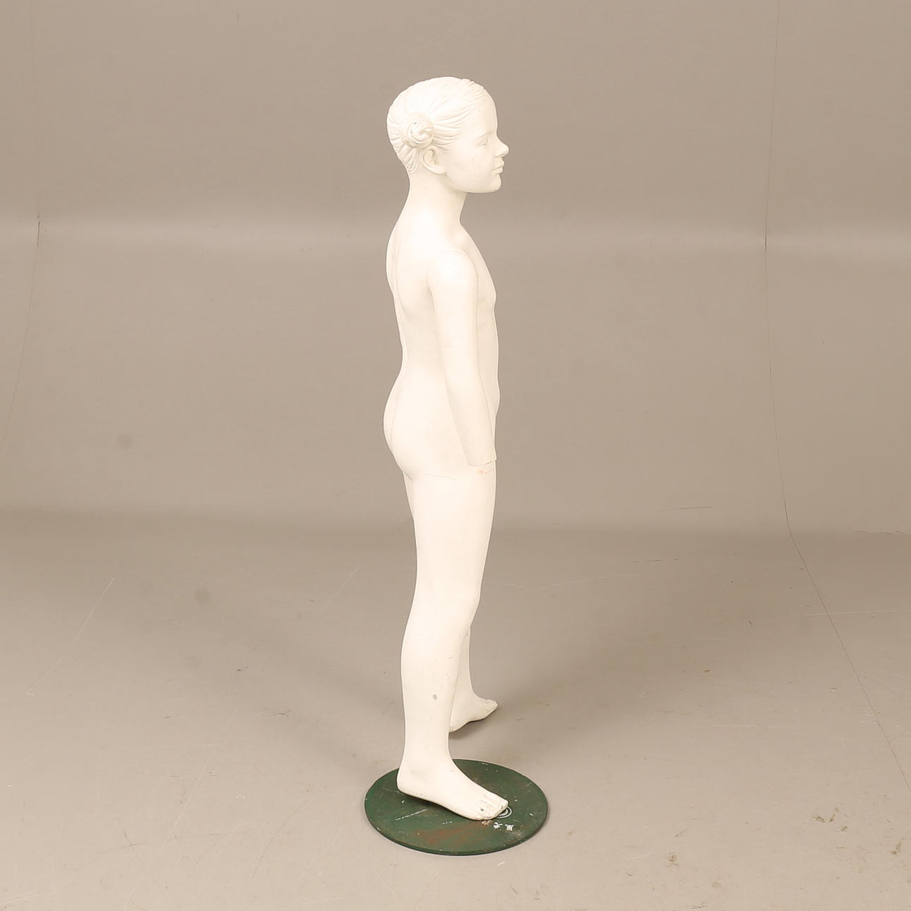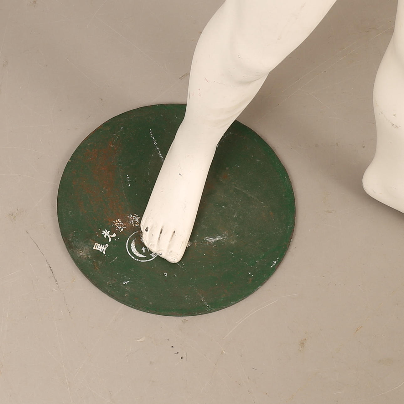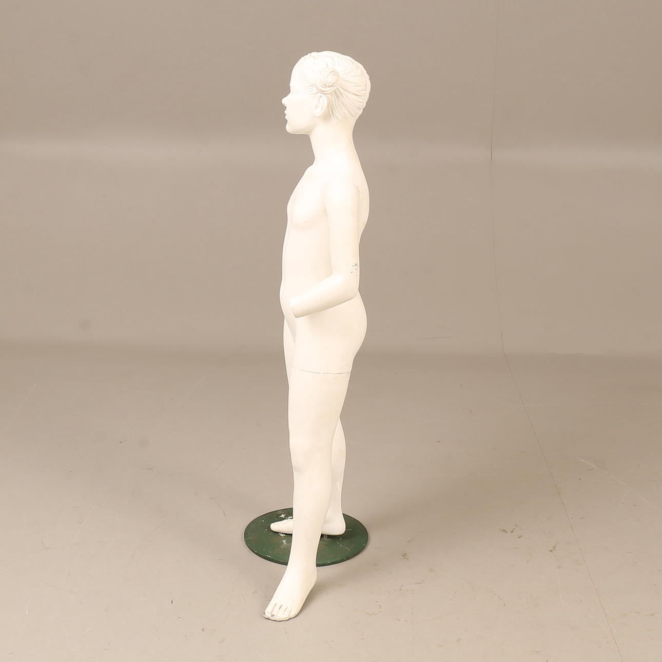 Normal wear and tear, hands missing, paint loss.