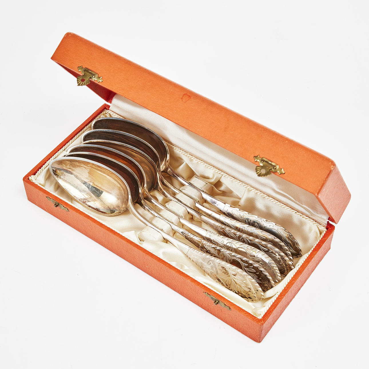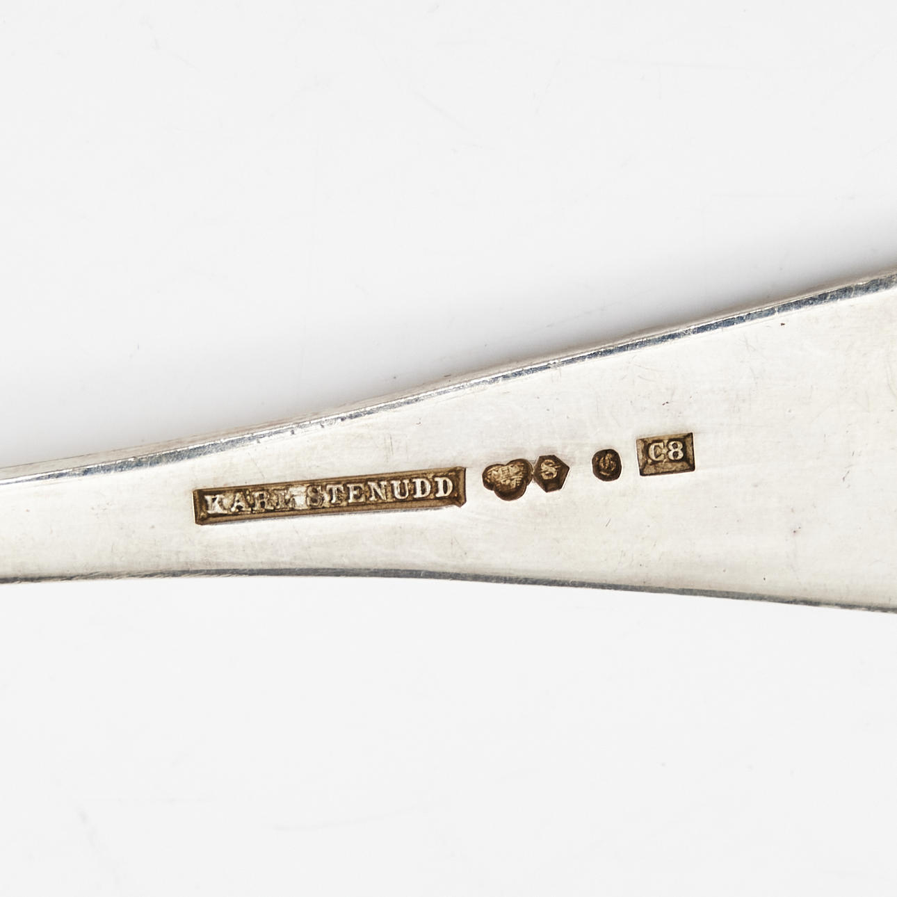 Length 22 cm, weight ca 324 g, case not in original included with a plaque with engraved name B.A. Andersson in silver, stamped Gustaf Dahlgren & Co, Malmö 1935.