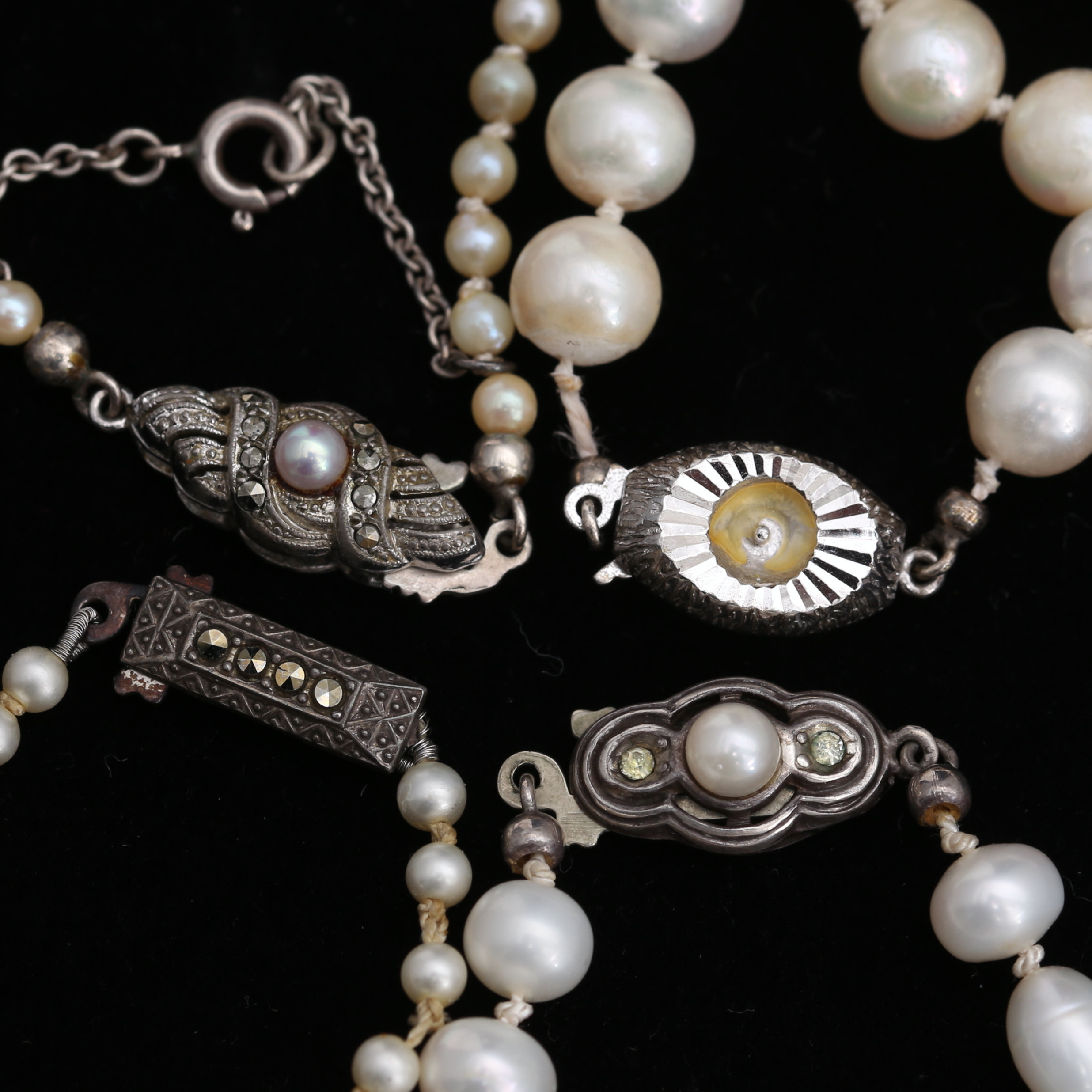 4373304. PEARL NECKLACE, 4 pcs with silver buckle.