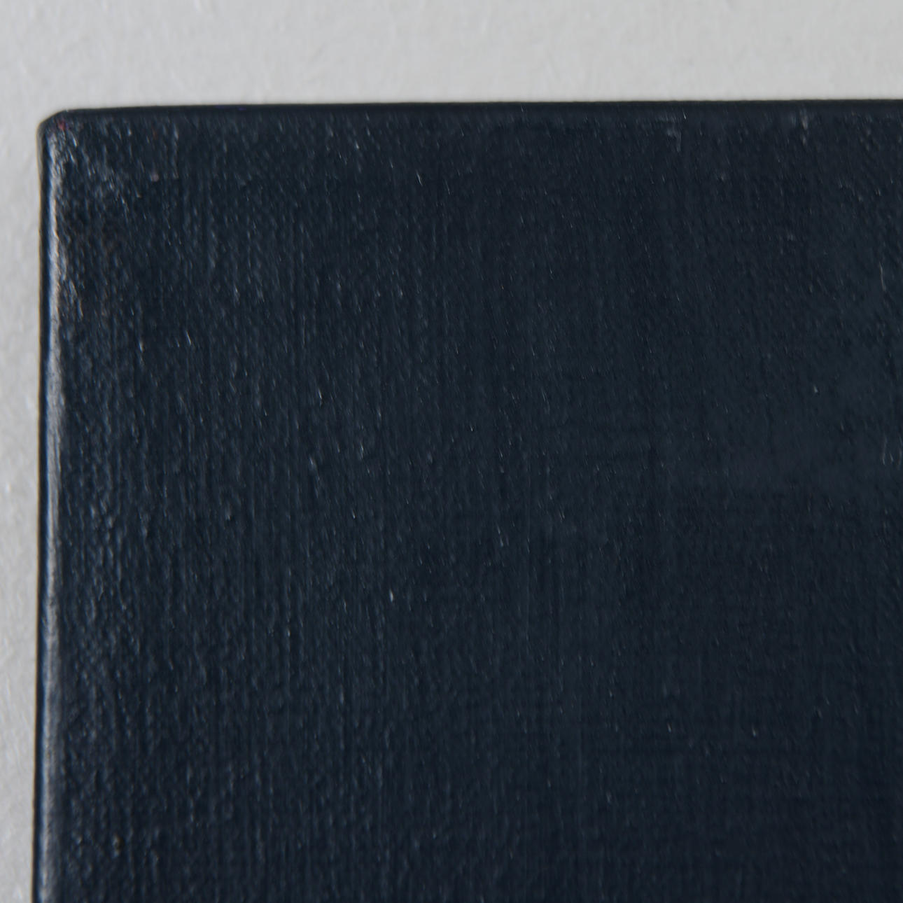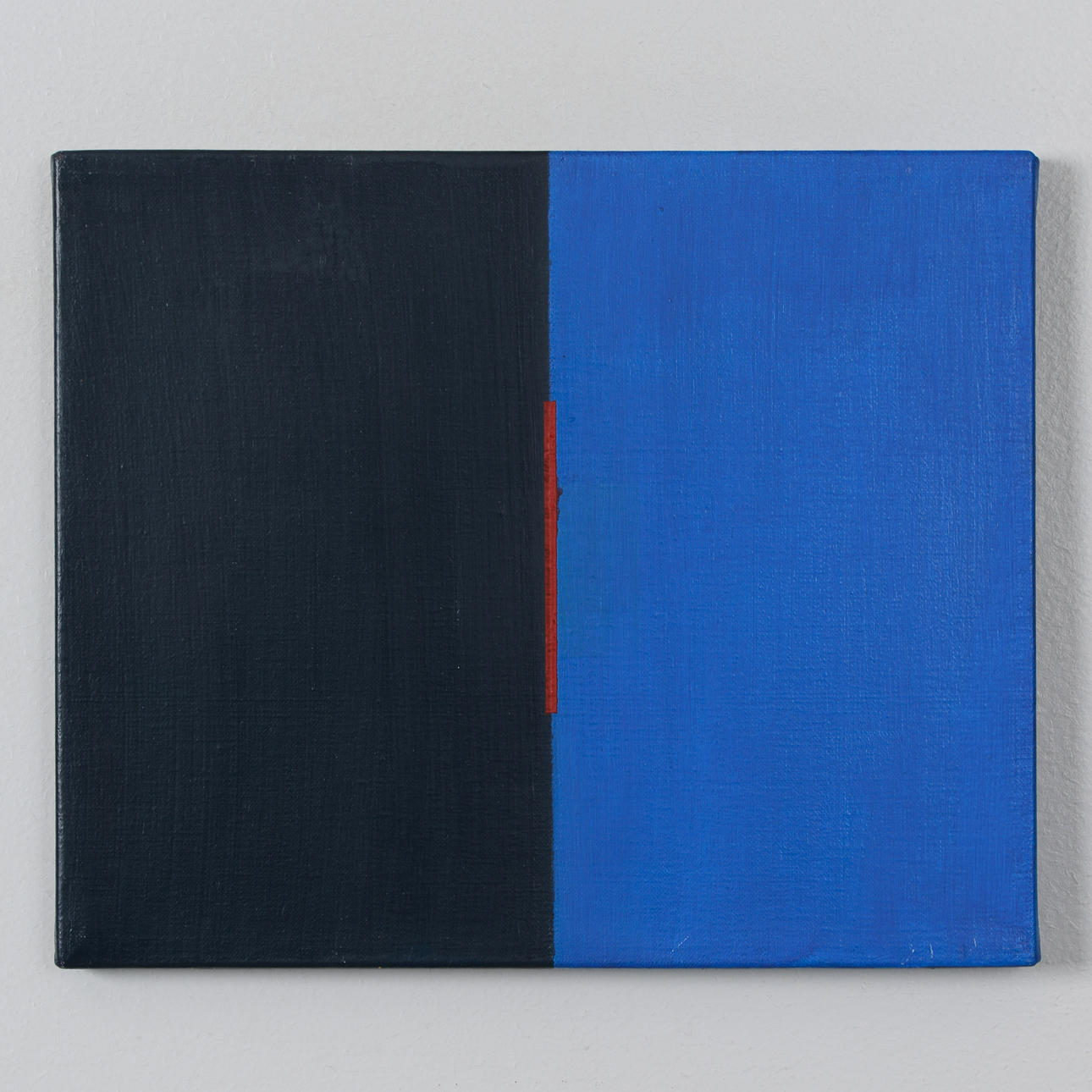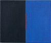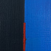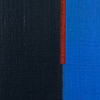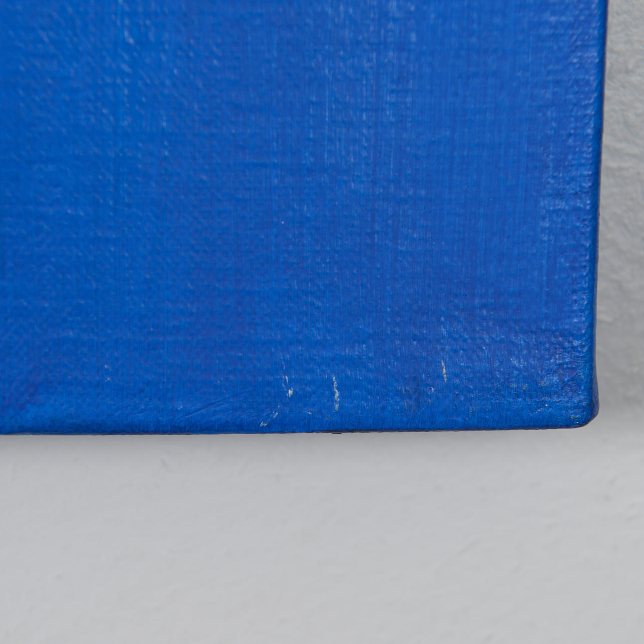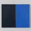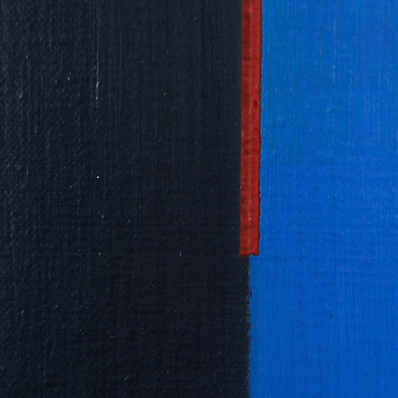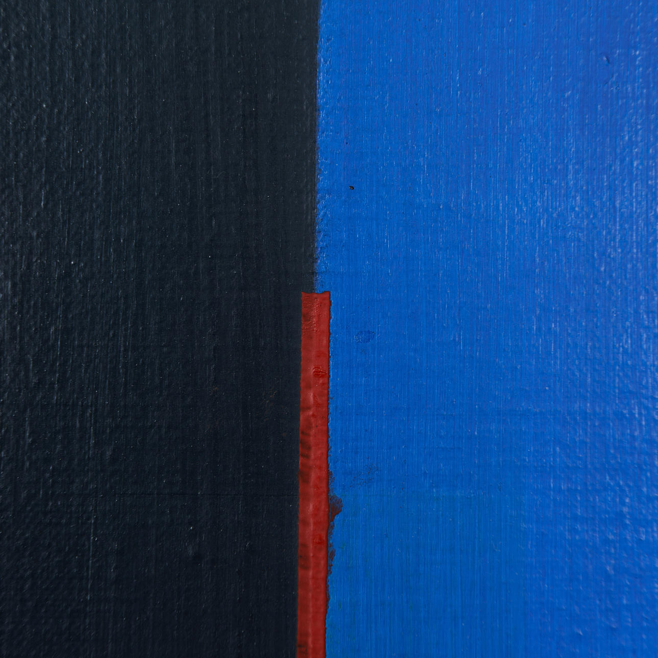 In the auction's painting, the contrast between the heavy black and the brilliant blue painting gives a tangible spatial effect, as if the colors were penetrating inwards or outwards from the canvas. The red line acts as a visual pulse, an interruption that causes the eye to stop and experience a subtle warping. Precisely these slight shifts from the strictly right-angled are typical of the artist; avoiding the strict abstract and introducing a human, non-perfect, dimension into the work.