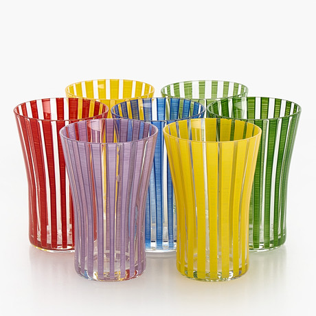 4373478. A set of 38 drinking glasses, 4 models, with stripe decor, first half of the 20th century.