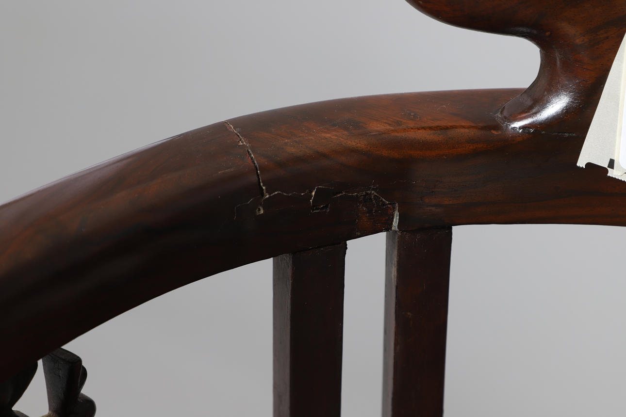Back support and legs have been repaired, With general marks and scuffs commensurate with age and usage.