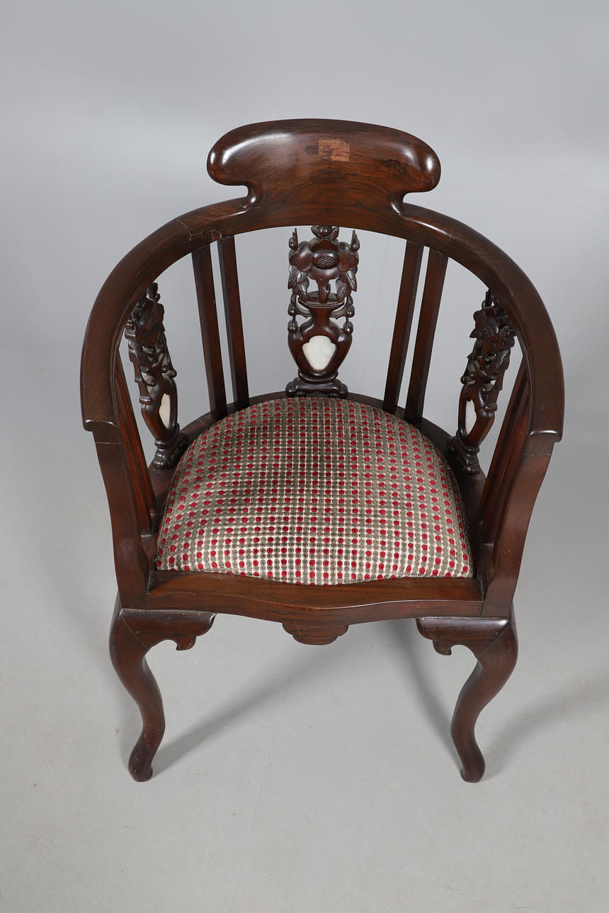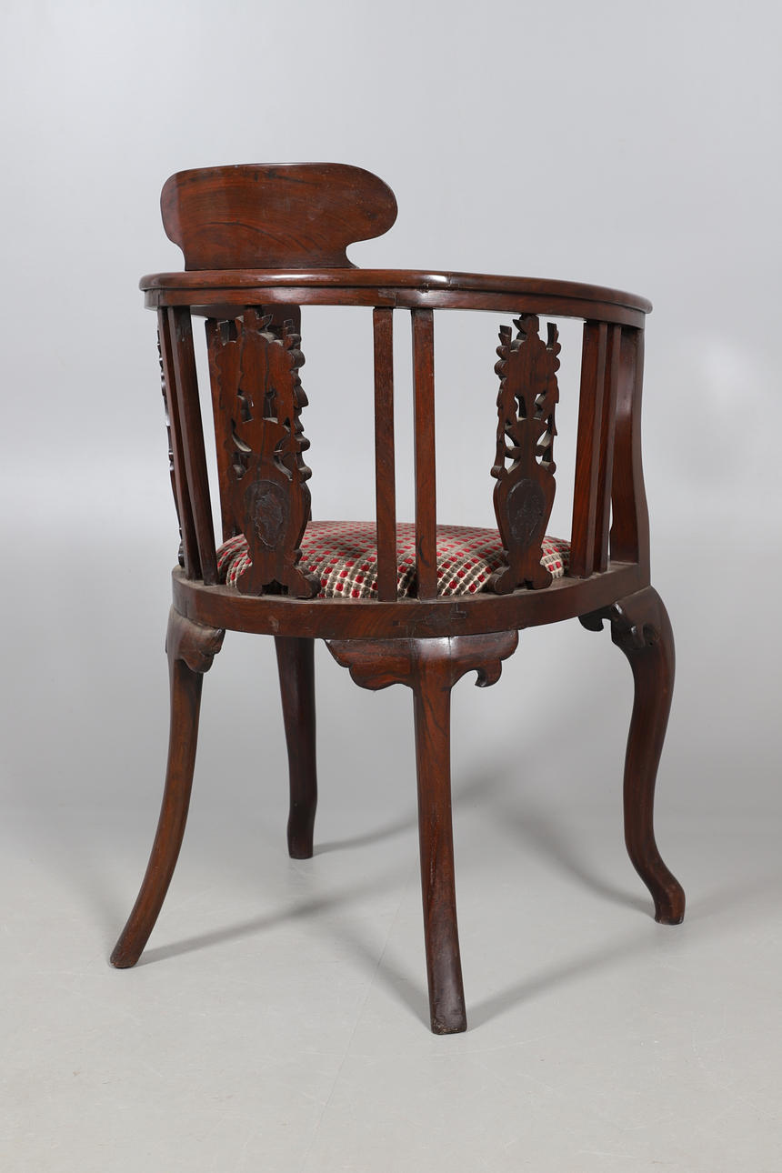 With a carved decoration back, stood upon turned legs. Total height 91cm.