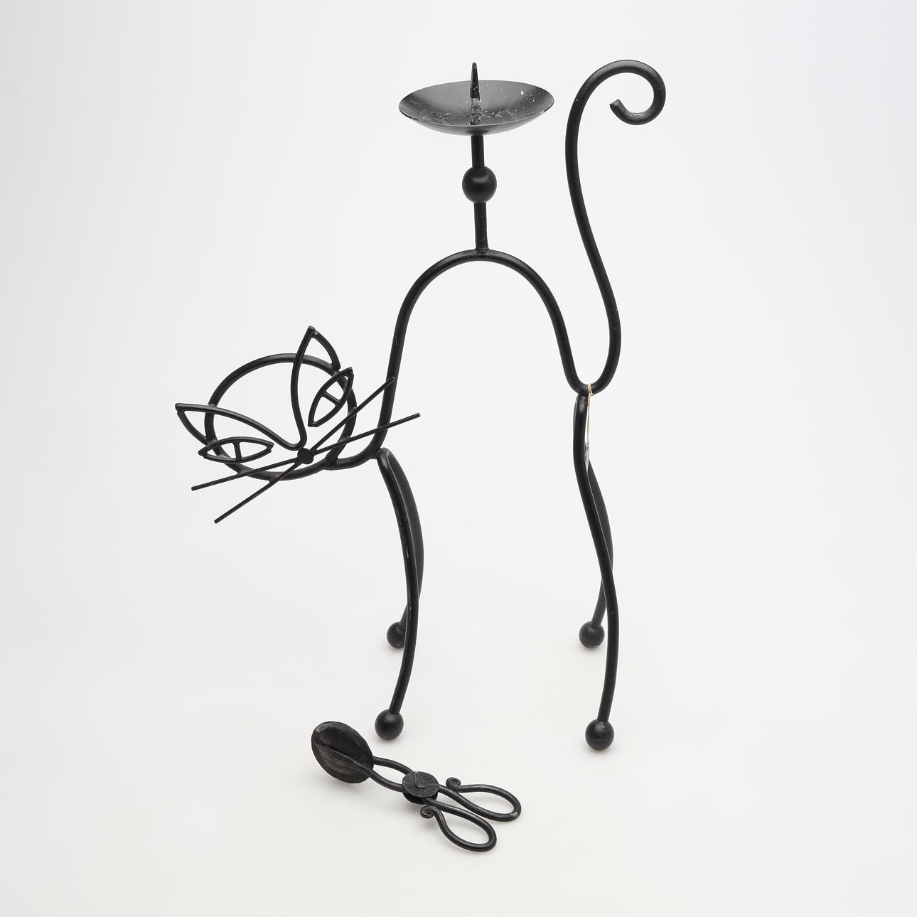 Cat: Width 33 cm. Depth 15 cm. Height 47 cm. 1 x light extinguisher, forged, length 15,5 cm.
