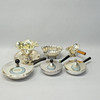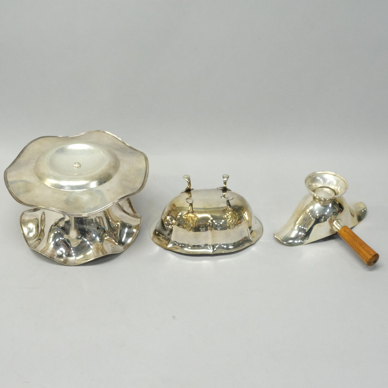 Three serving carots with lid, handle made of wood, diameter 14-20cm. Sauce pot, height 7,5cm. Sauce bowl, height 12cm, diameter 18cm. Bowl, height 7,5cm, length 16,5cm.