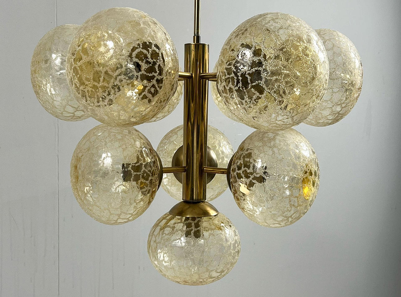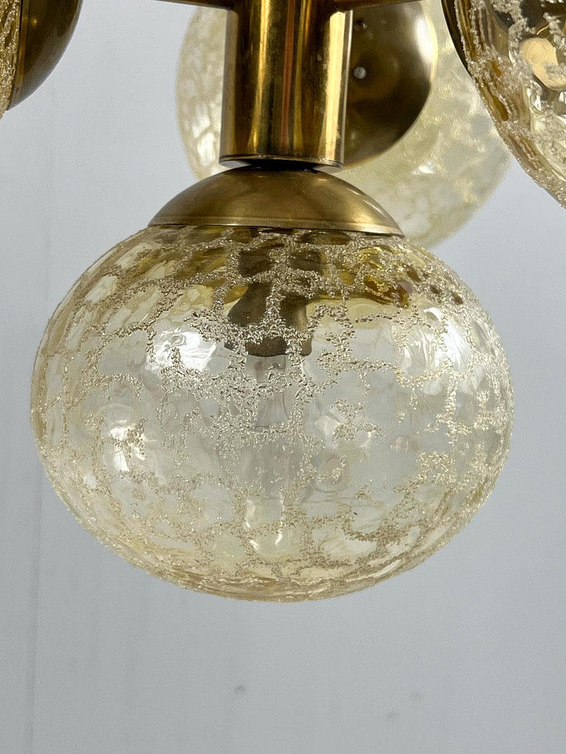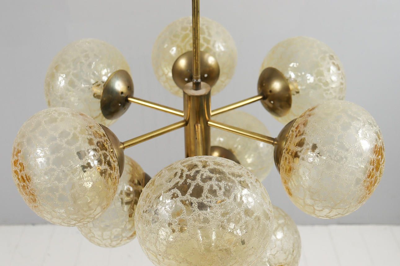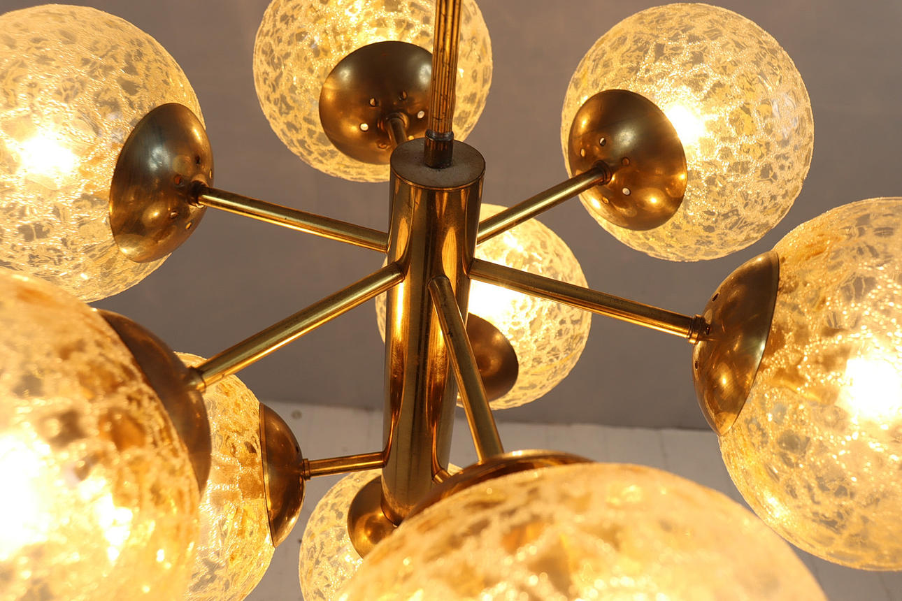 Space Age Sputnik hanging lamp/ceiling lamp, Germany, 1970s, construction made of golden metal and glass, 10 burning points available,