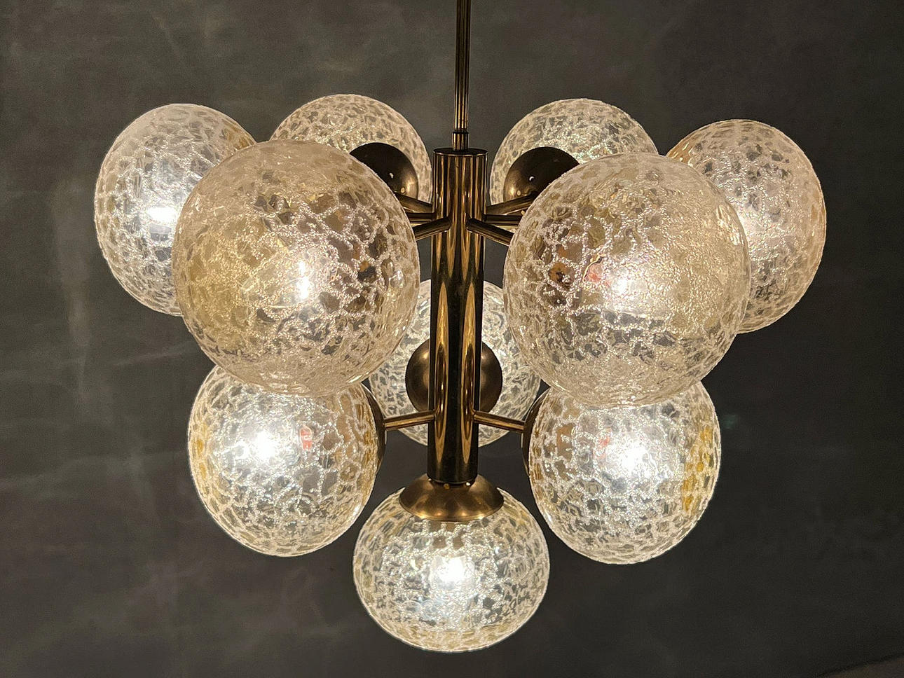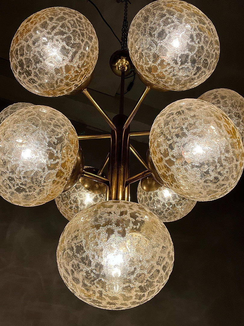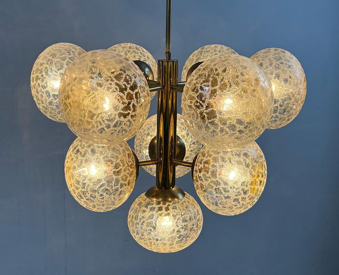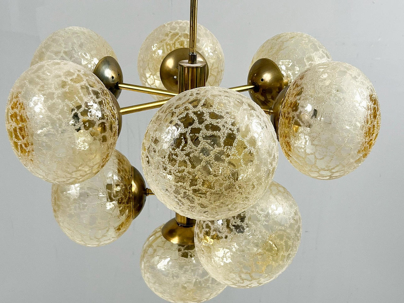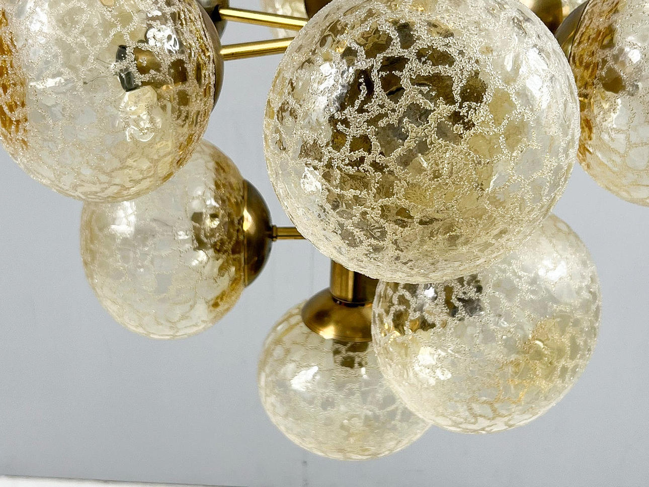 Space Age Sputnik hanging lamp/ceiling lamp, Germany, 1970s, construction made of golden metal and glass, 10 burning points available,